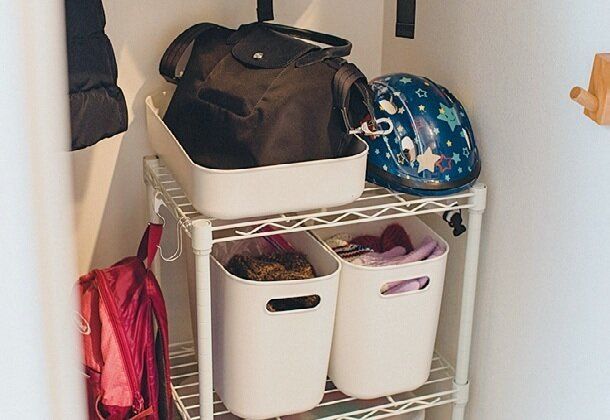 子どもの上着や園帽、洗濯後の体操着などは「また外に持ち出す物」だから、玄関に。「バッグも財布のレシート以外は玄関が定位置」。