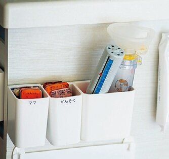 二男とakiさんが毎日飲む処方薬は、マグネットつきケースに入れてシンクの横に。「水もすぐ出せるので、飲み忘れがなくなりました」。