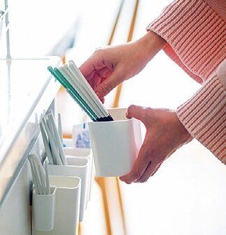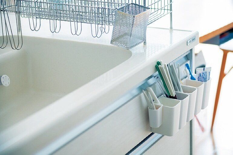 - カトラリーは、マグネットつきケースで、シンク前に出しっ放しに