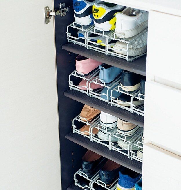 - たくさんある靴は、”重ね収納”で出し入れしやすく