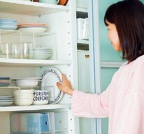 出し入れしやすさを考え、重ねたとき厚みがない食器をチョイス。「子ども用の皿はプラスチック製に。雑に扱っても割れないので、ズボラな私でも安心です(笑)」。