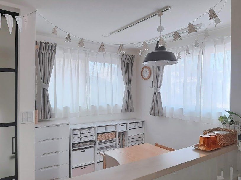大きなクリスマスツリーには憧れますが、収納スペースと出し入れする手間を手放しました。代わりにツリーの形のペーパーフラッグや小さなツリーを飾って楽しんでいます。どんな小さな飾りでも子どもたちは大喜び。素敵なクリスマスツリーはお外で観賞しています。