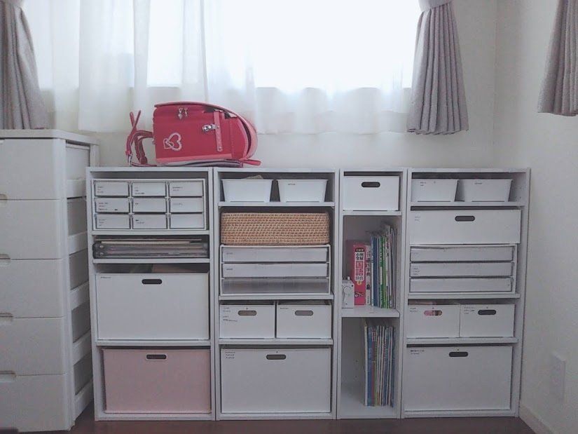 子どもの学用品・おもちゃ・衣類なども全てリビングに置いてありますが、「今」使うものだけを収納すればそれほどスペースは必要ありません。