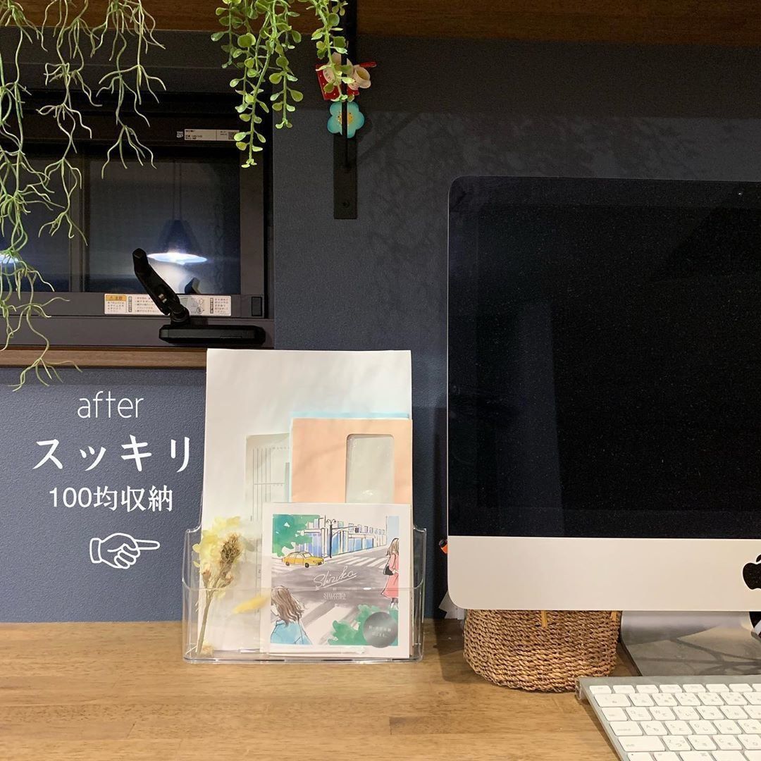 請求書などの郵便物や、子供の学校のプリントなど、目につく場所に置いておかないと忘れそうなものは、書類スタンドを使って立てて収納!クリアタイプなら100均アイテムでも安っぽく見えません。