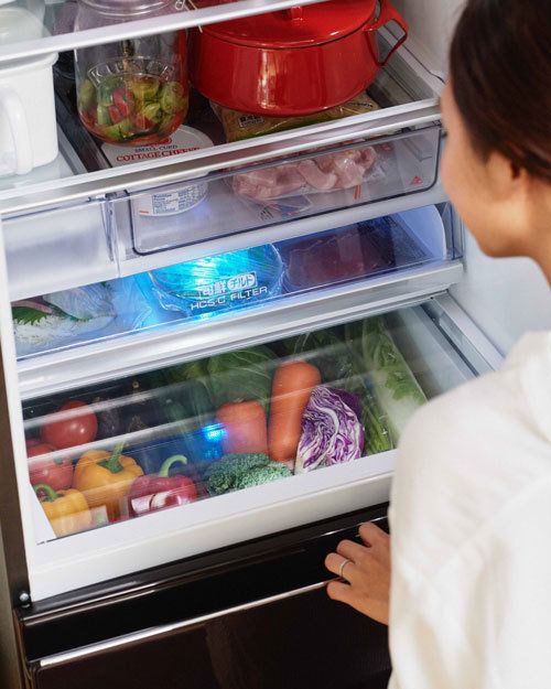 冷蔵庫の扉を開けただけで、野菜室が丸見え。野菜が目につくから、「あ、これ使おう」と気づくことができます。買った野菜の存在を忘れることなく、献立にプラスできれば、毎日の食事のバランスもとりやすくなります。