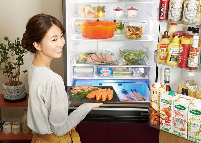 AQUAのDelieシリーズは、チルドルームを横約47cm×奥行き約29cmのワイド幅に。幅広パックが2つ横に並べて入る大容量。乾燥が気になるサラダや刺身などを盛り付けてインしておけば、塾帰りの子ども、残業帰りのパパと、バラバラの食事時間でもそのたび盛り付ける必要なし! パサつきや変色もしっかり抑えてくれるから、 鮮度もそのままに笑顔でサーブできます。