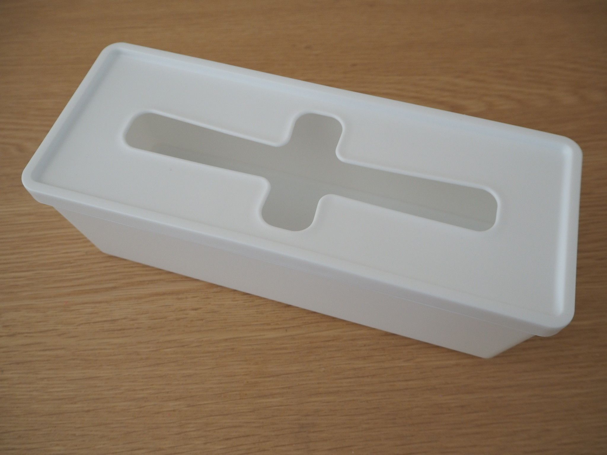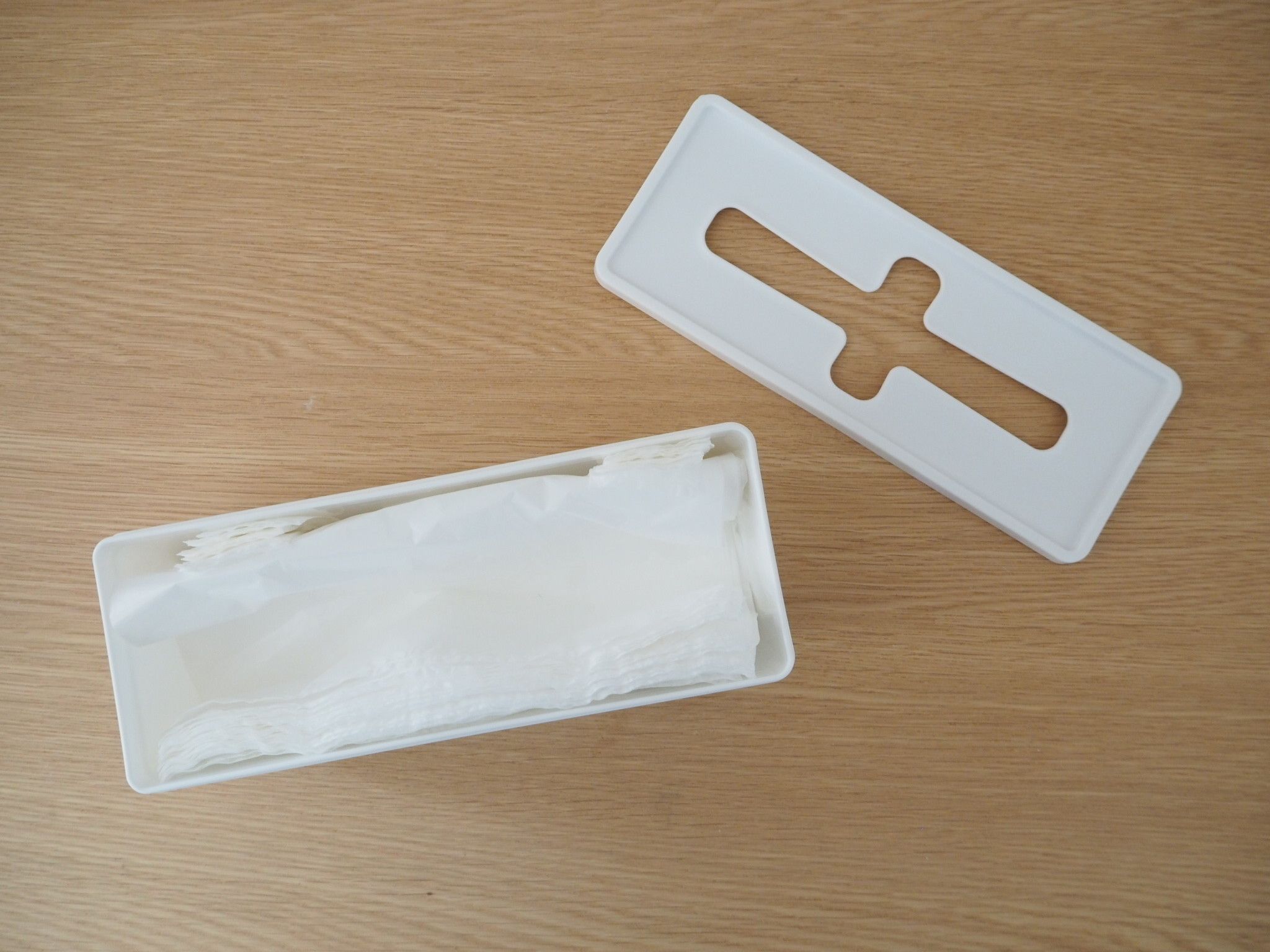 真っ白なケースなので色味もごちゃつかず、すっきりとした印象!サイズは8.5cm×21.4cm×高さ7.1cmなので、水切りネットや小さめのビニール袋がすっぽり入ります。