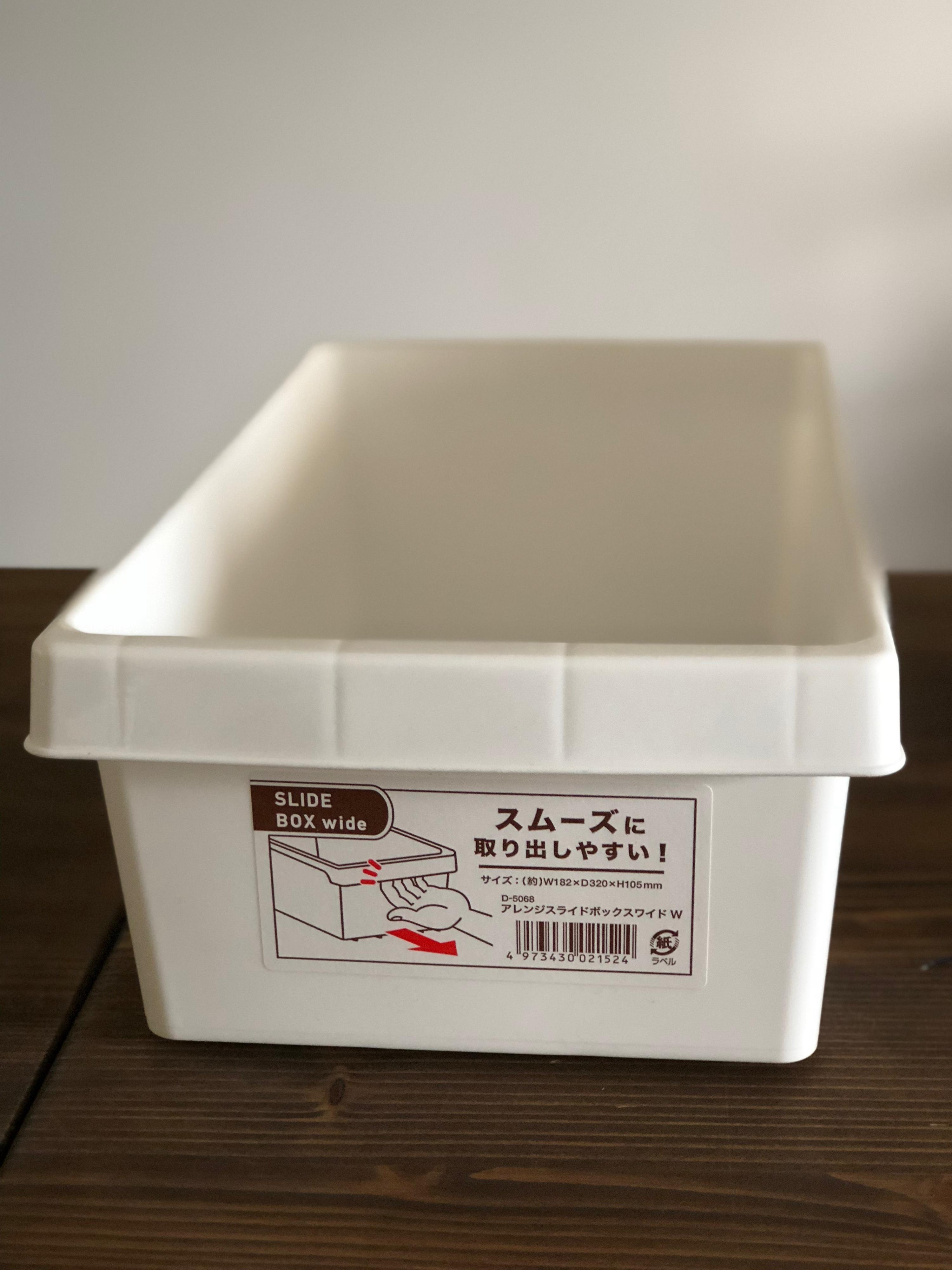 例えばセリアで購入できる「アレンジスライドボックス ワイドW」もその一つです。
