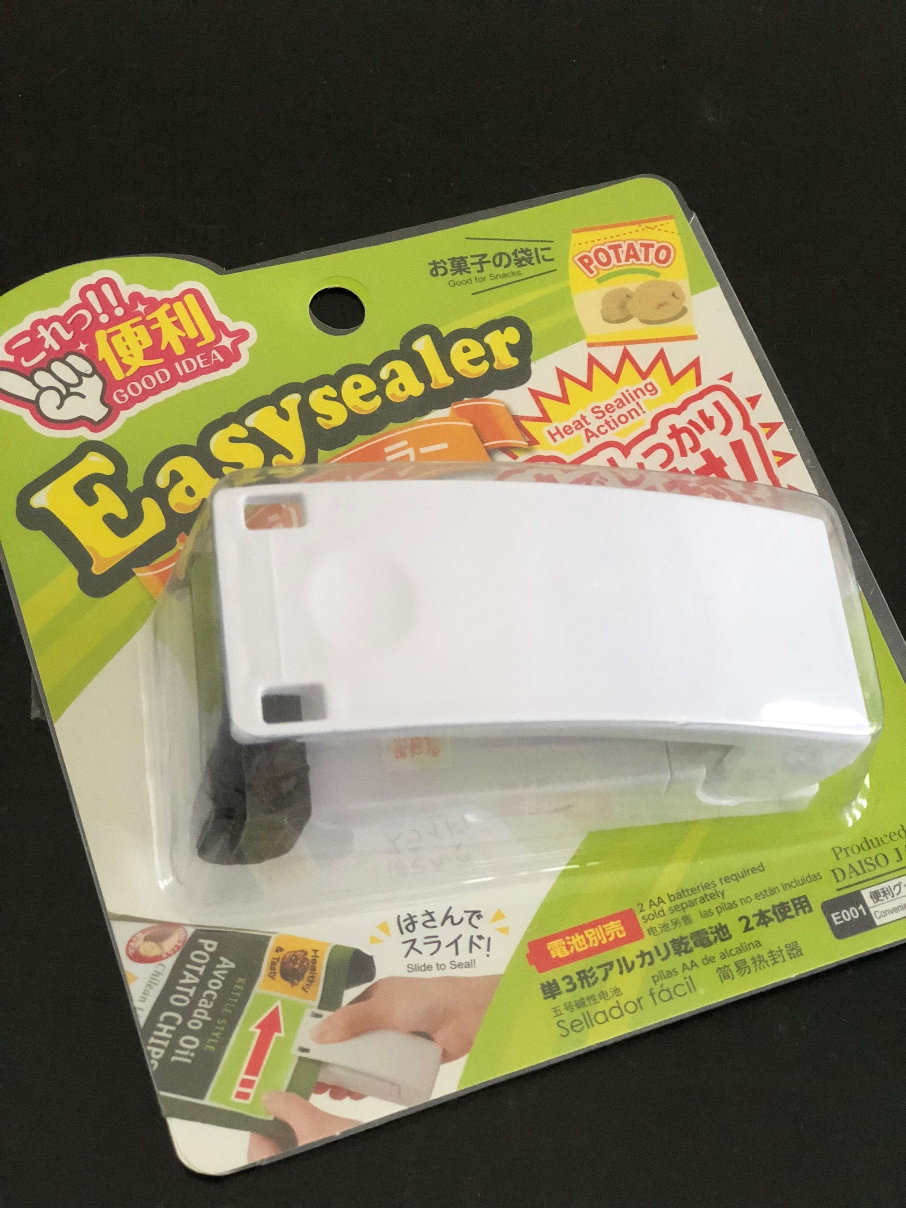 一度開封した食品は中身は減っていくのに包装はそのままのサイズなので、無駄に場所を取ります。減った分だけ包装もコンパクト化していけたら冷蔵庫の中もスッキリします。そんな時に便利なのがDAISO「イージーシーラー」108円。