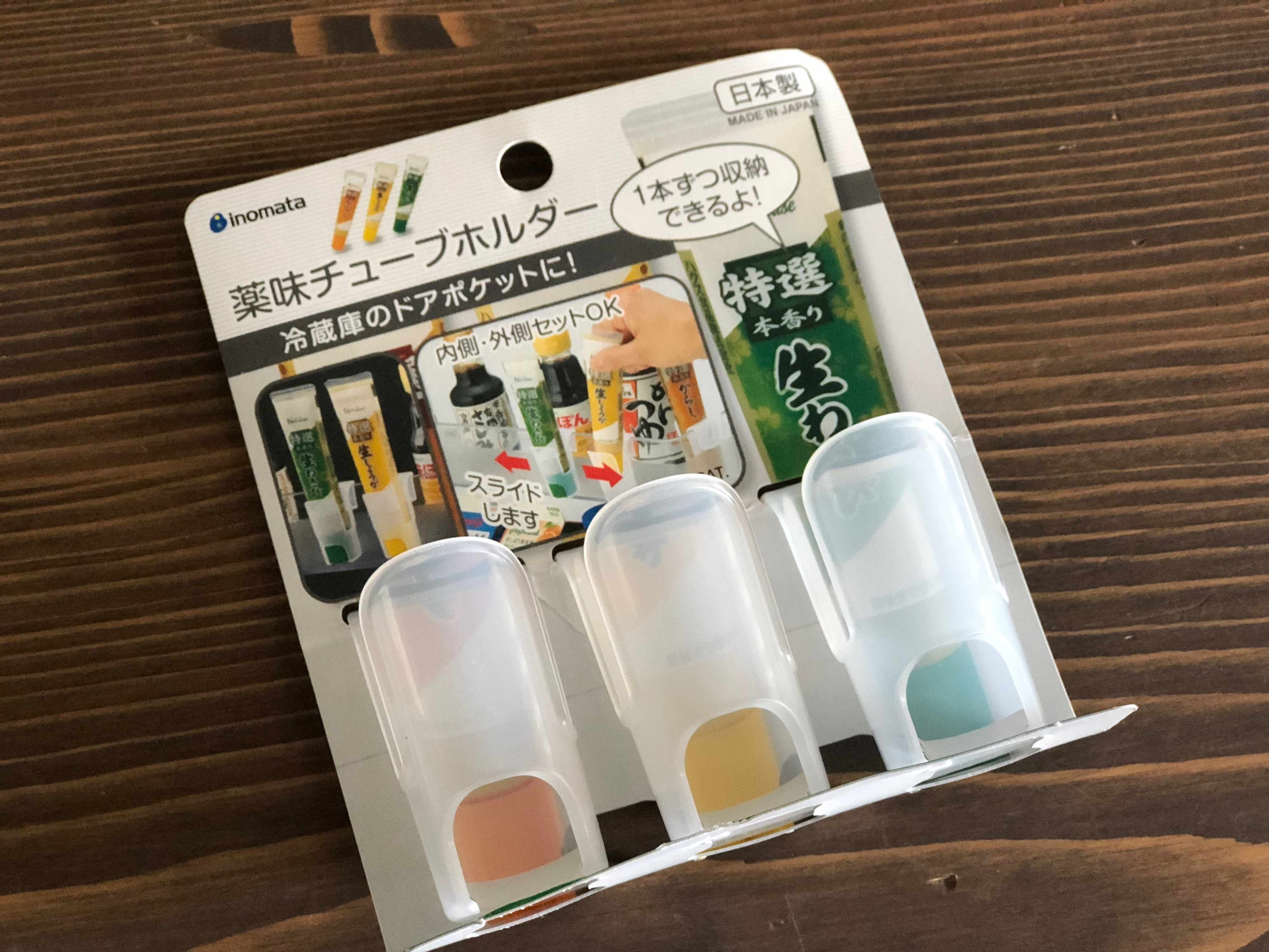 キャンドゥで見つけた「薬味チューブホルダー」は3~4本入ります!という連結型と違って1本1本が個別型のフォルダー。必要本数に合わせて自由に組み替えできるのが魅力。