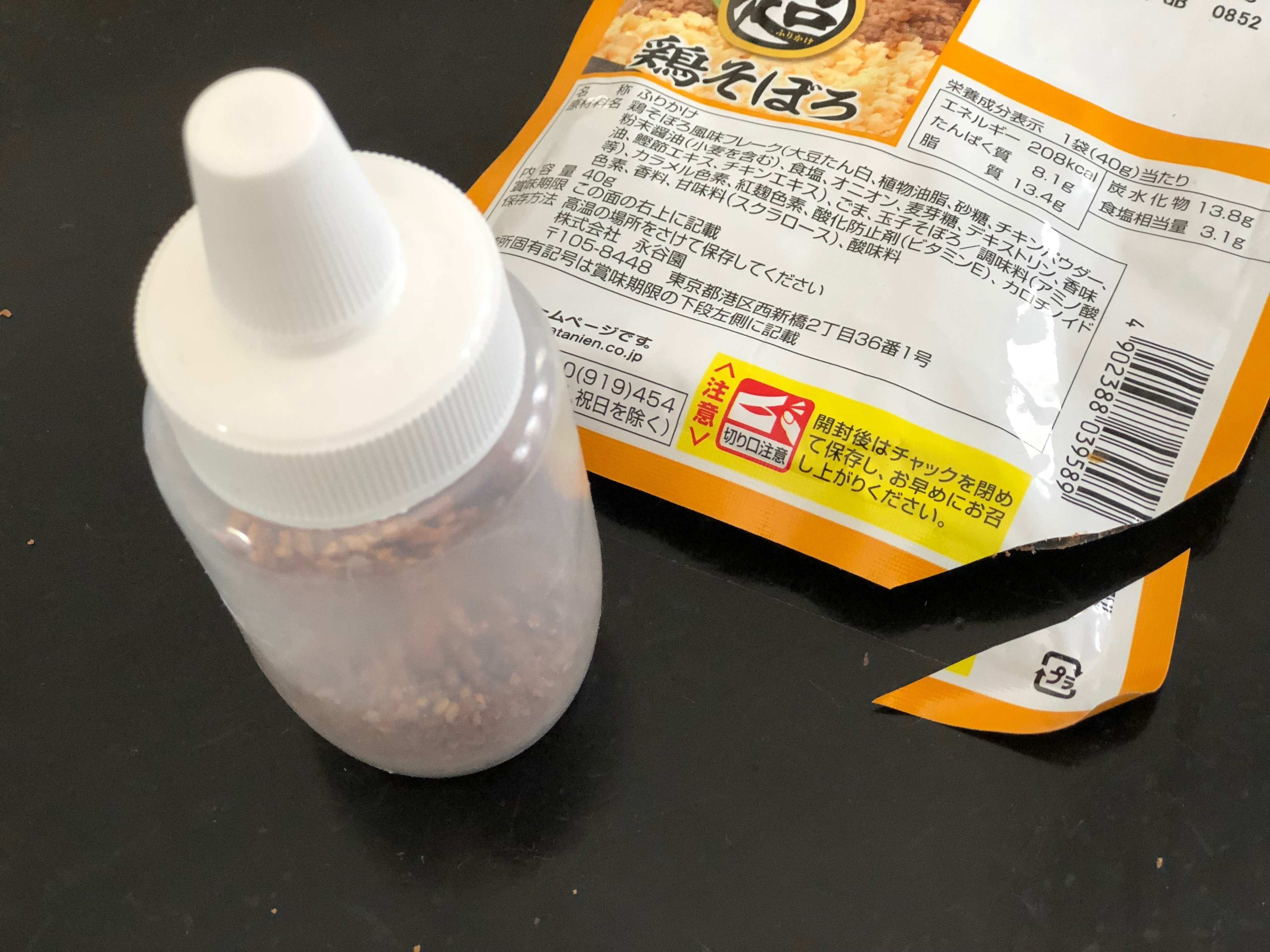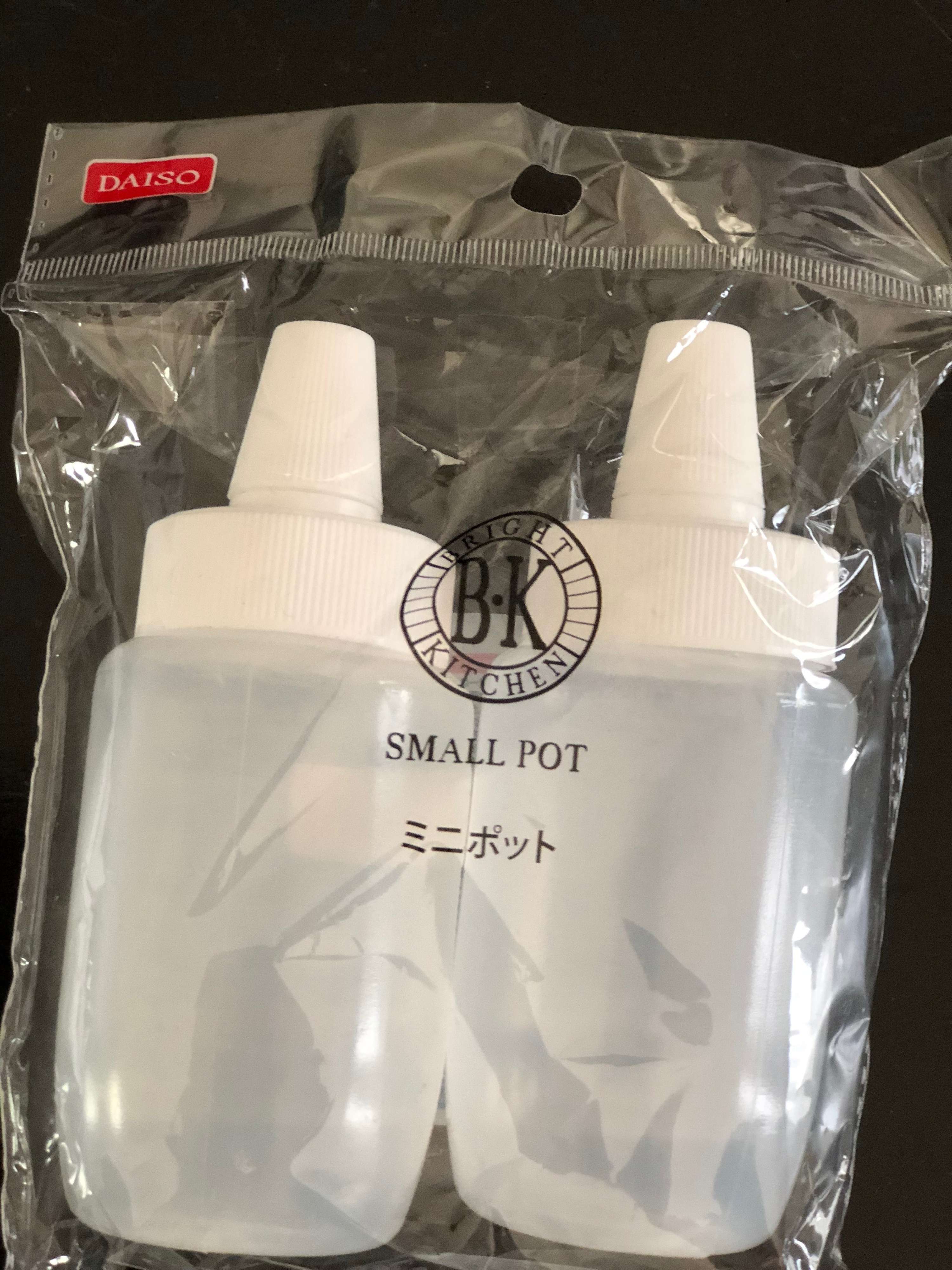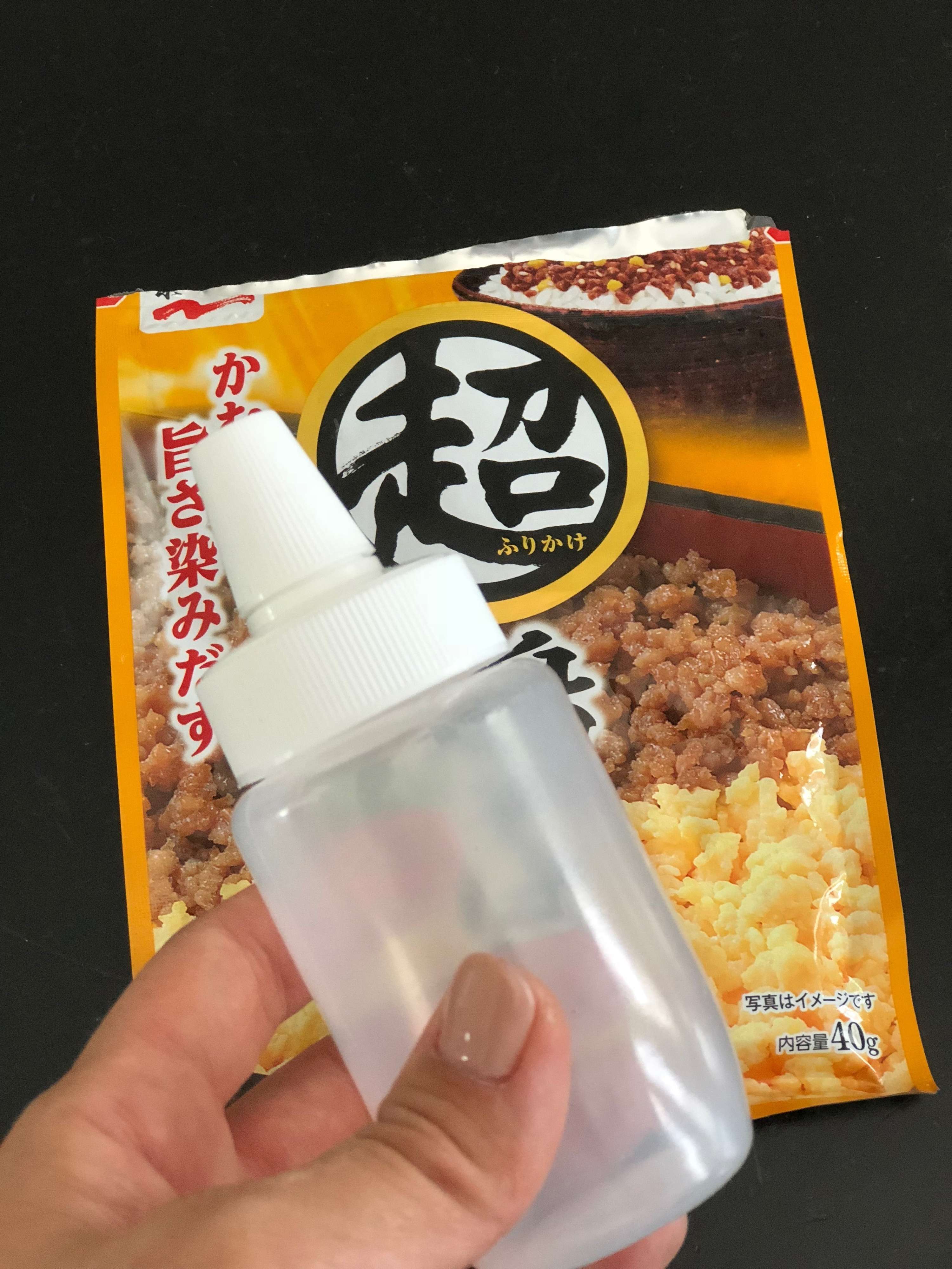 DAISO「ミニポット」もお勧めです。はちみつ容器を小さくした形でゴマなどを入れ卓上調味料としても便利なこの容器。実はふりかけにとっても便利なのです。