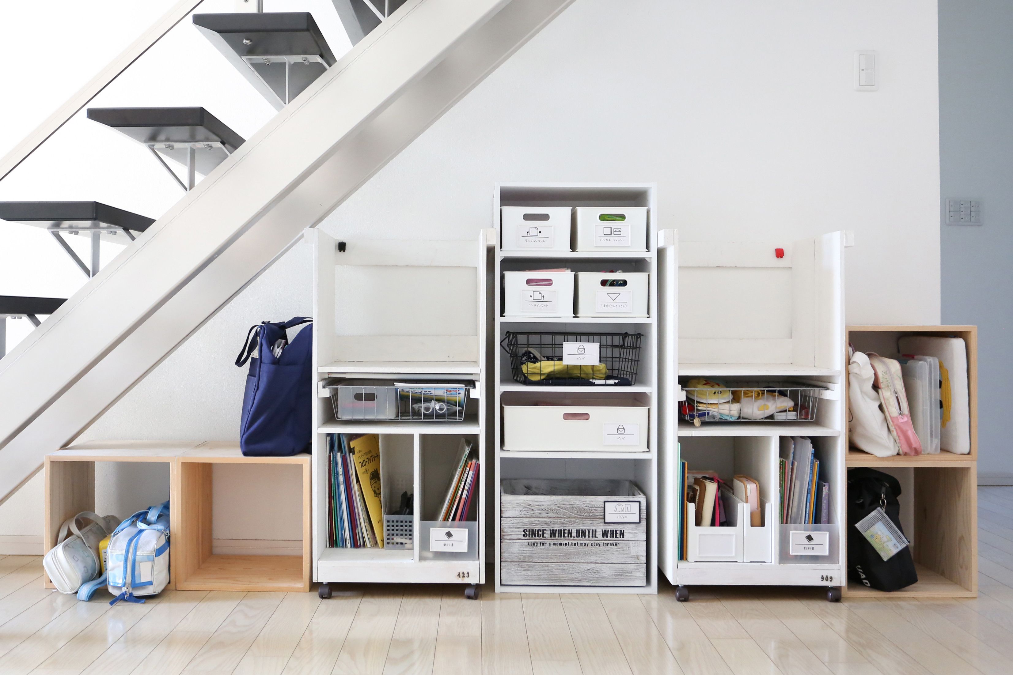 3人の子どもたちの学校持ち物はたくさんあります。翌日の準備も人別やアイテム別にインボックスで管理をすることで「面倒さ」を軽減するようにしています。