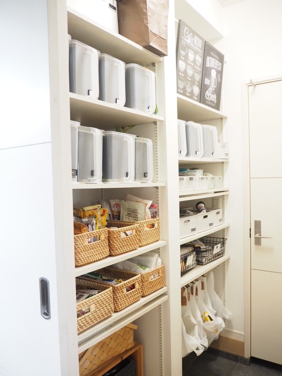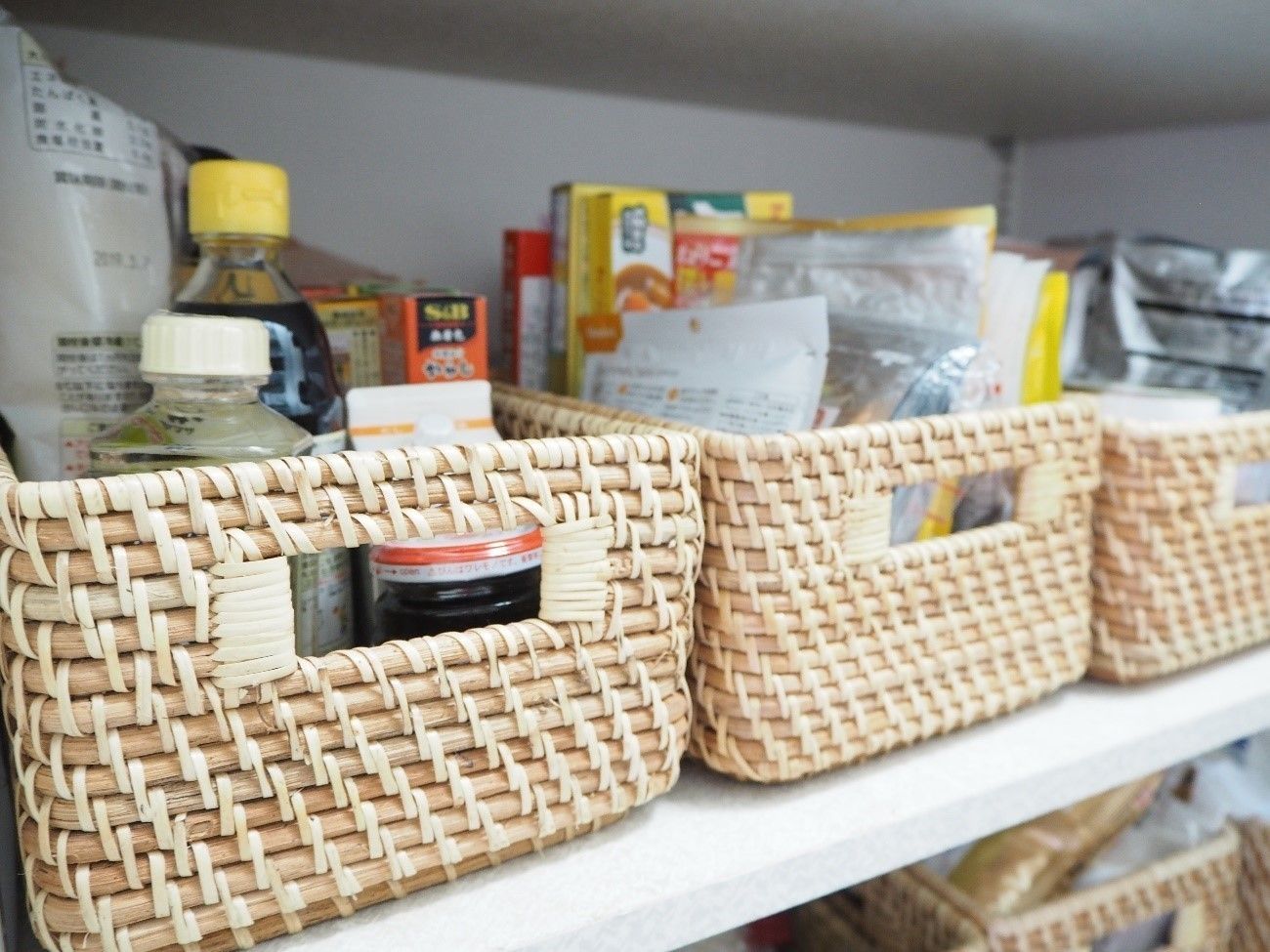 ニトリにはインボックスと同じモジュール展開の素材違いボックスも発売しています。我が家ではパントリーの食品管理に「積み重ねバスケット ライド2」使っています。
