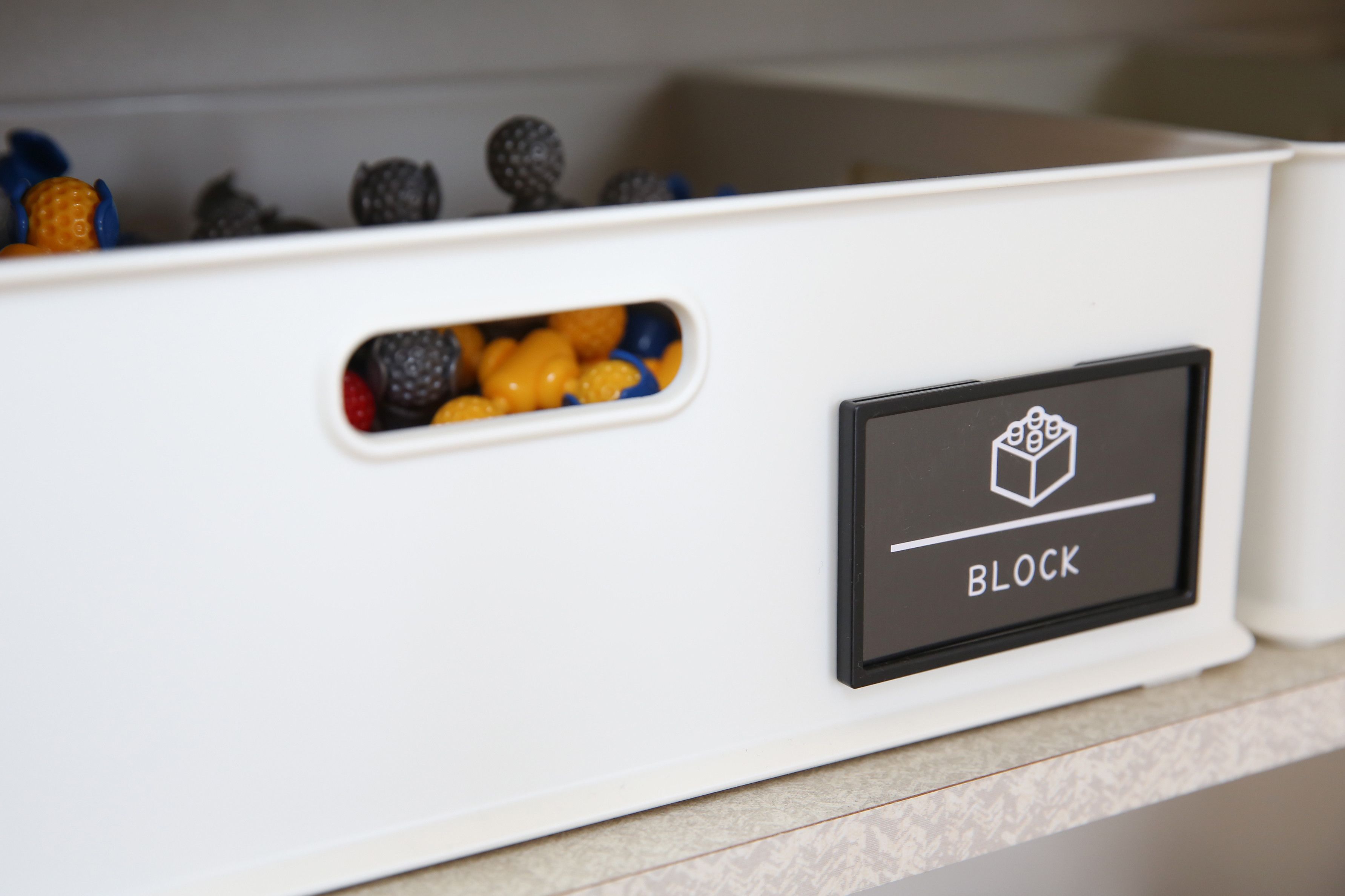 子ども部屋のおもちゃ収納にも便利です。取っ手がついているので持ちやすく、オープンなつくりが片づけやすさに繋がります。