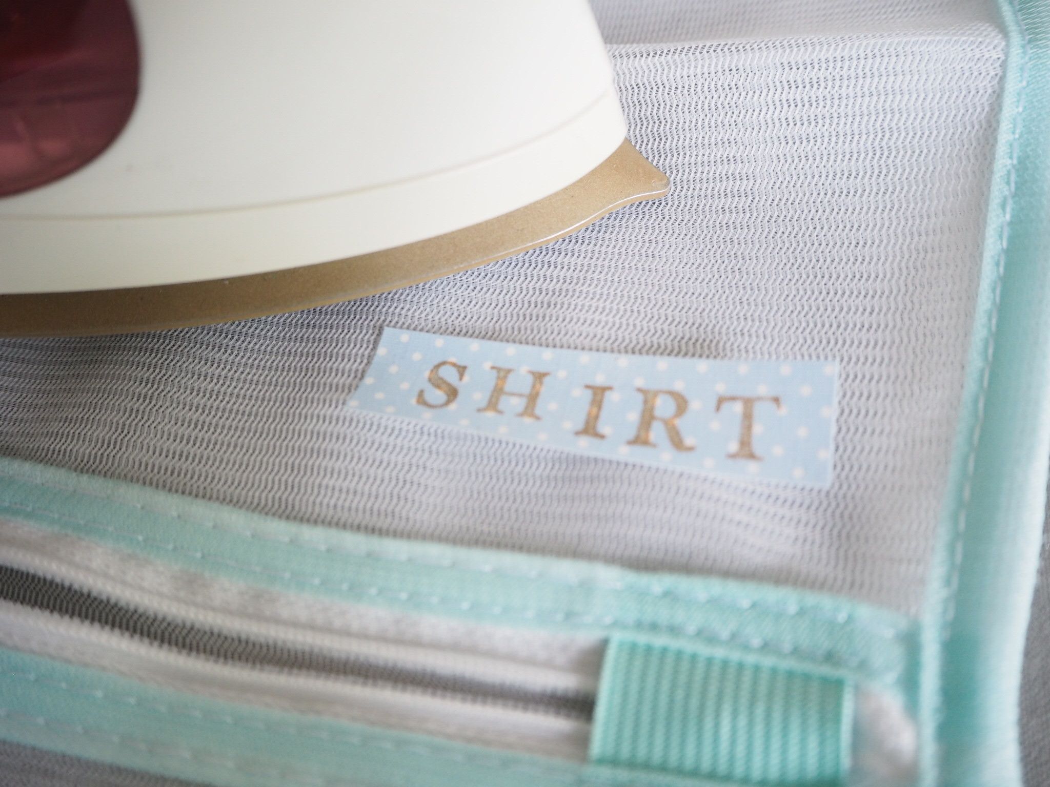 インクを定着するのと、テープを洗濯ネットに付けるのにはアイロンがけを要しますが、この2アイテムを使えば、両方の作業を1回のアイロンがけで済ませることができちゃいます。
