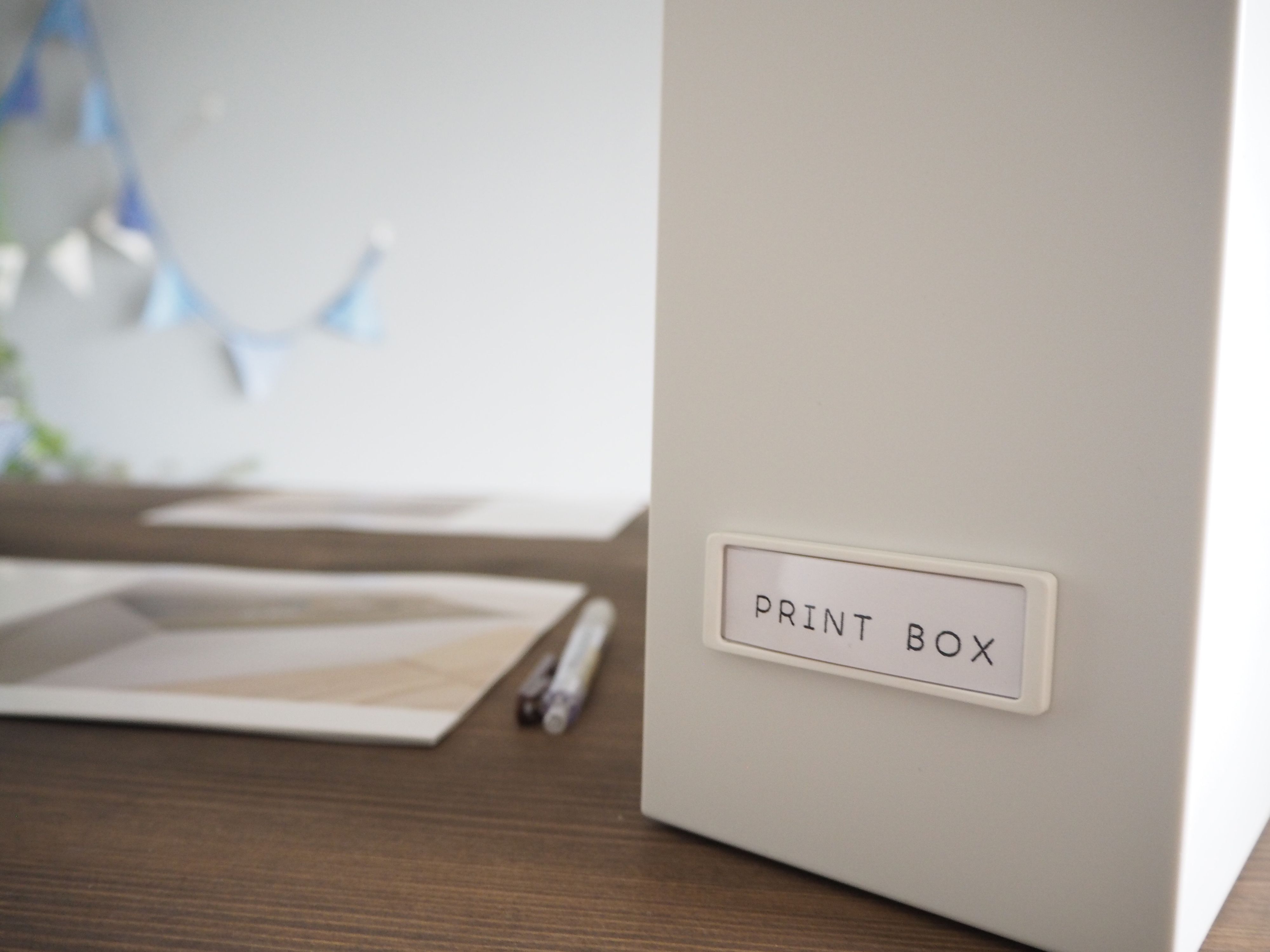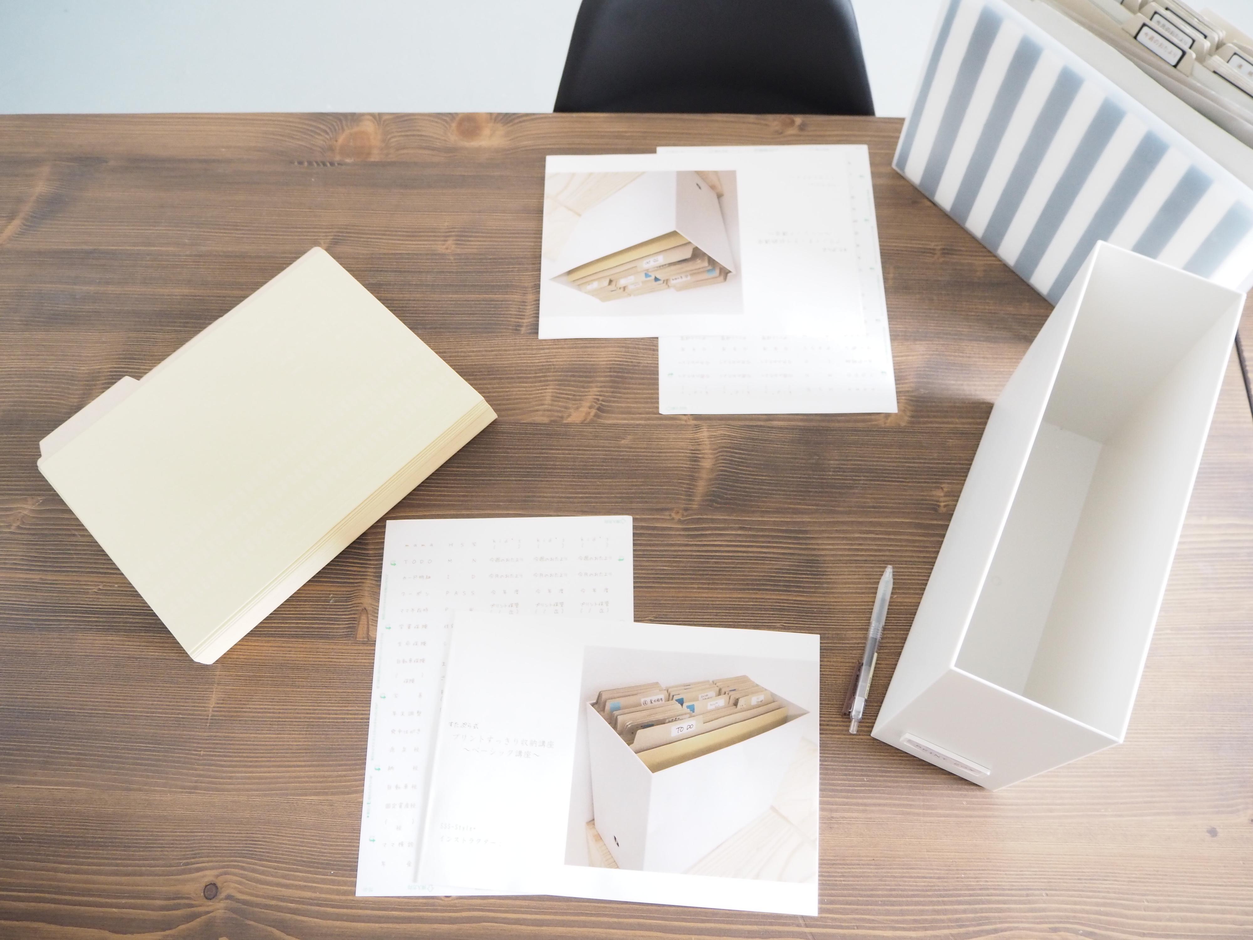 人別にボックスをつくり学校プリントやお稽古事別に無印良品さんの個別フォルダを使い、プリントを管理することができます。