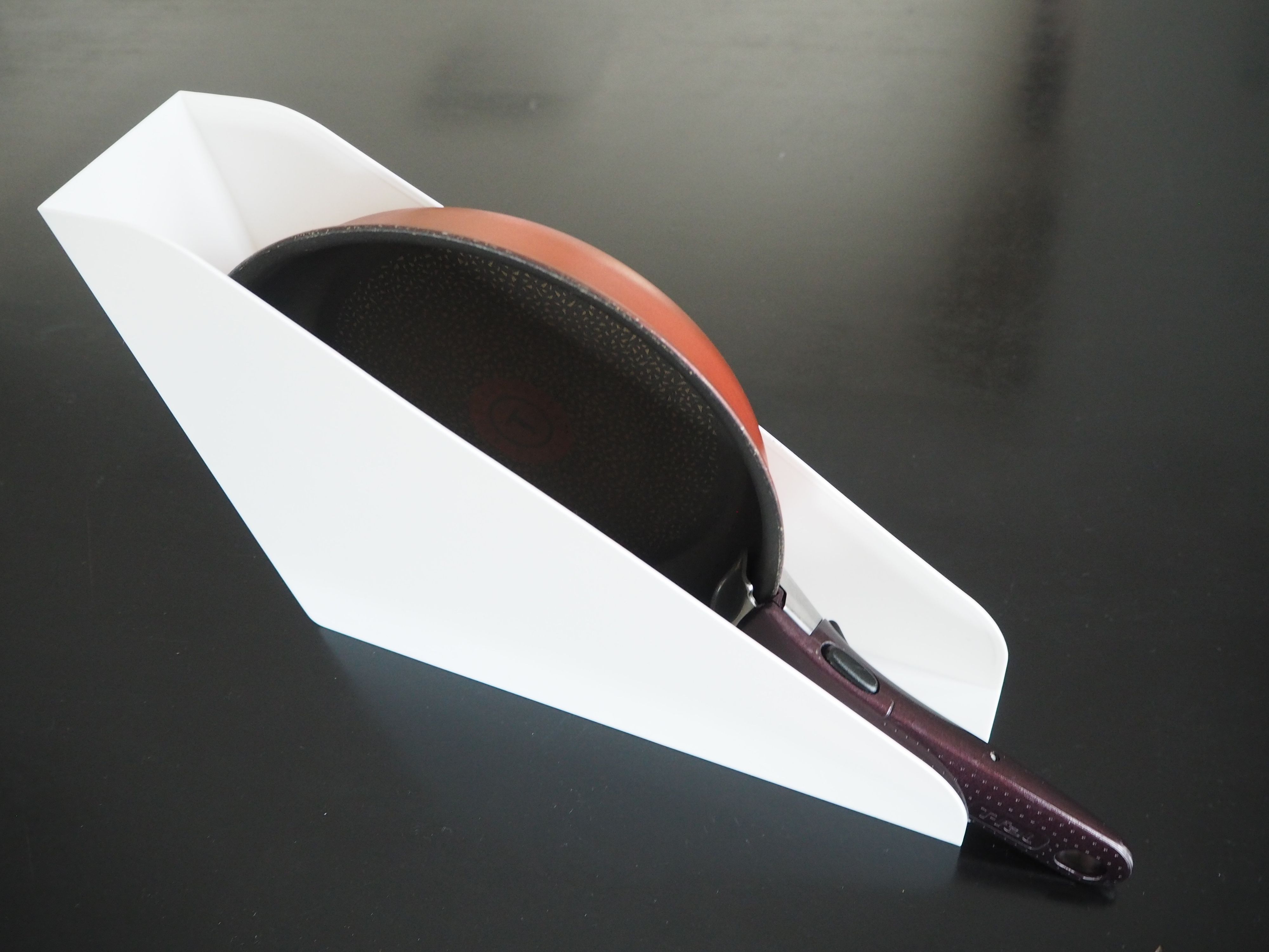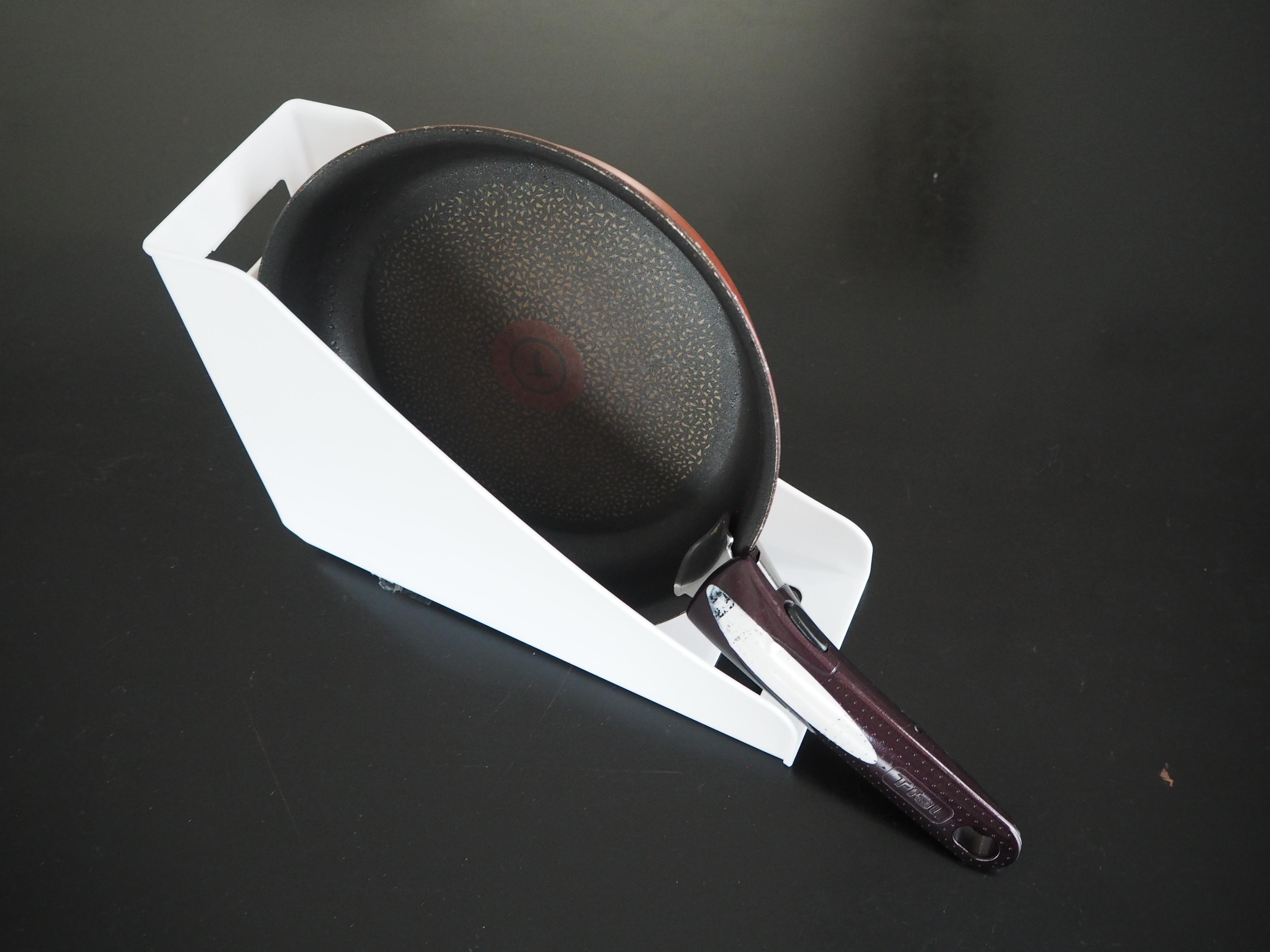 固めの樹脂で薄いフレーム。幅が73㎜とやや狭いがうすいフライパン向き。