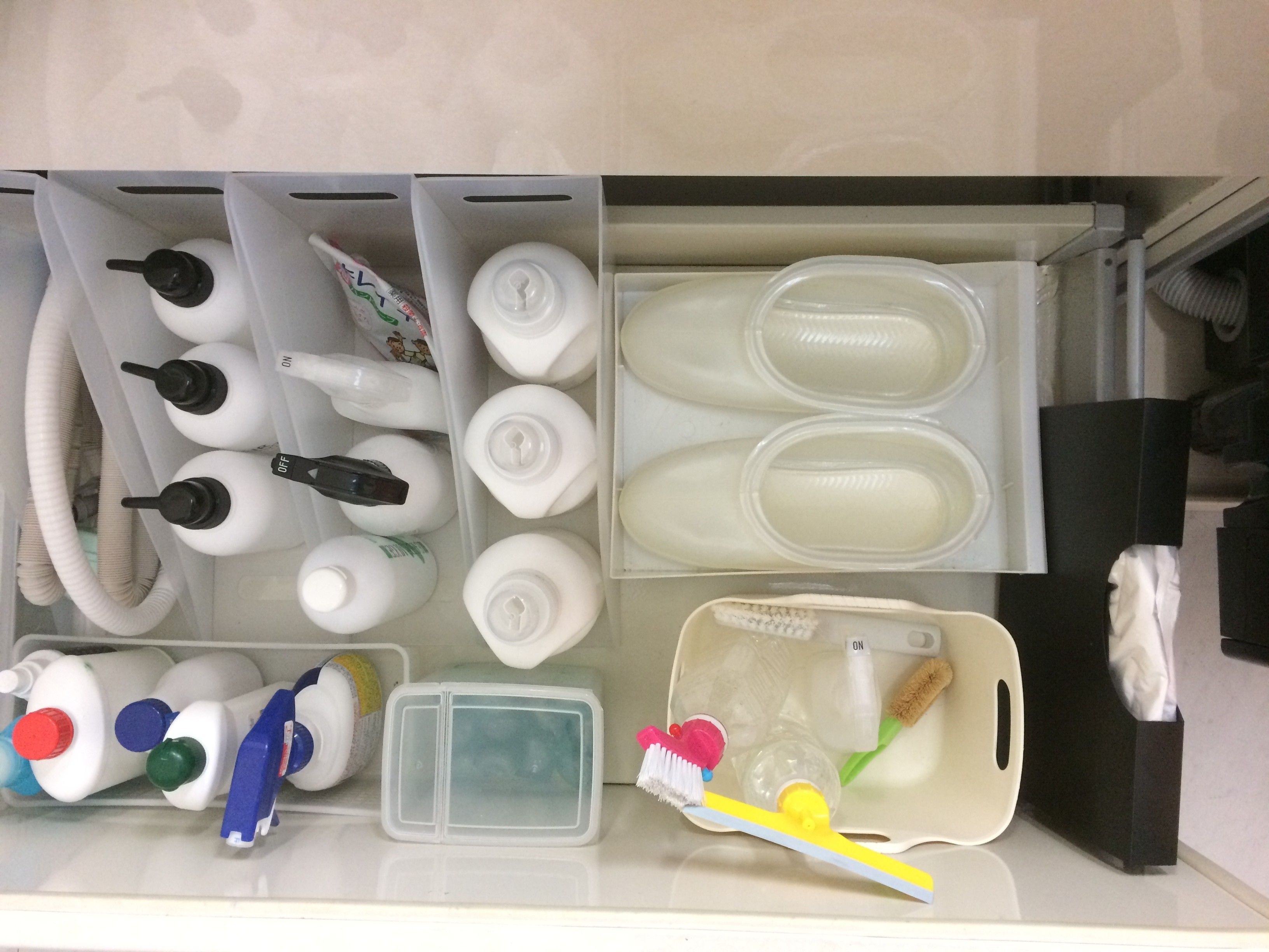 とジャンルごとに枠をつくることで何系のものが無いか、あるかがわかりやすくしています。つねにここに入る分だけ!がポイントです。