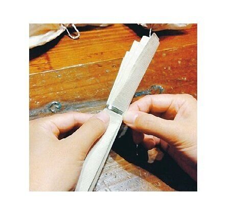 1 ペーパータオルをじゃばら状に折りたたみ、中心をビニールタイで結ぶ。