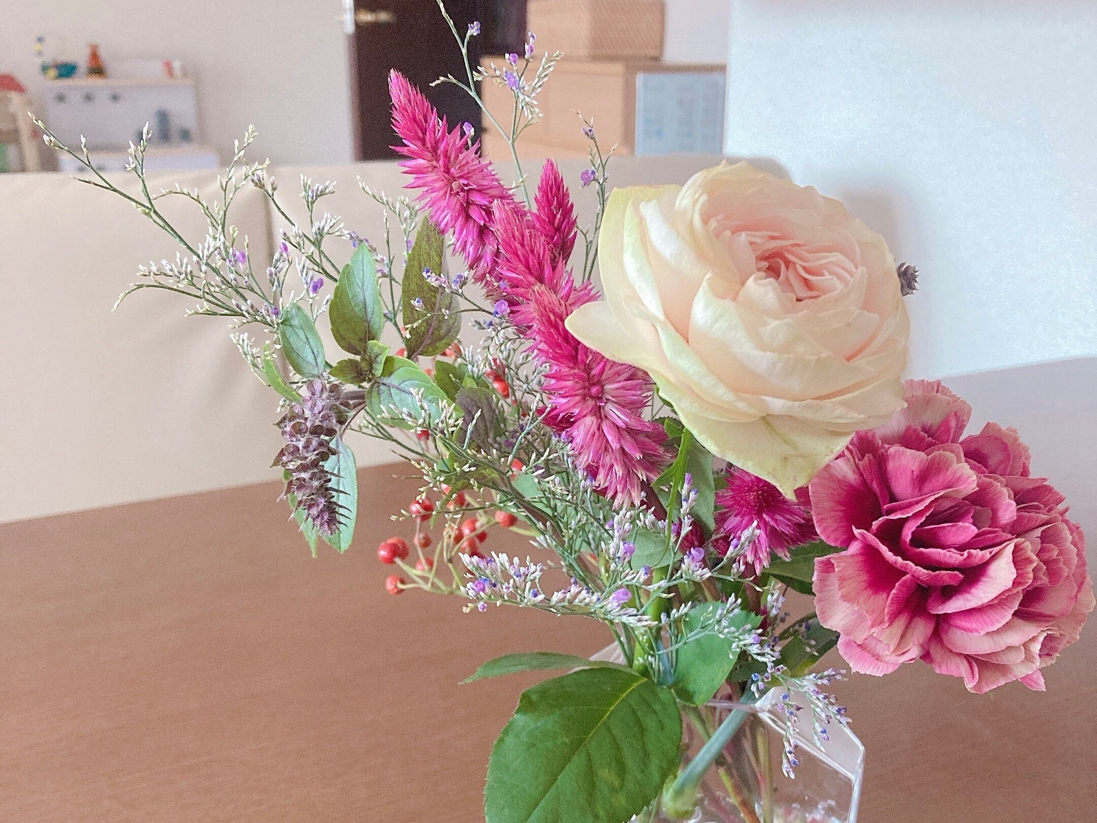 観葉植物に比べると、私にとってはまだ負担の少ない切り花。それでも常に置いてあるよりもたまにあるからこそ気分が上がる気がしています。