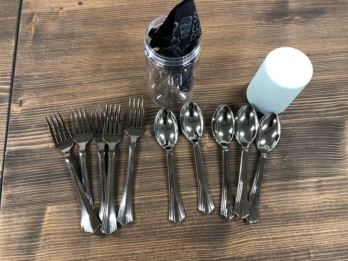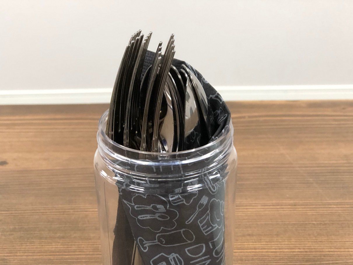 たとえば、上記写真のようにフォーク、スプーン各5本ずつを入れることができます。