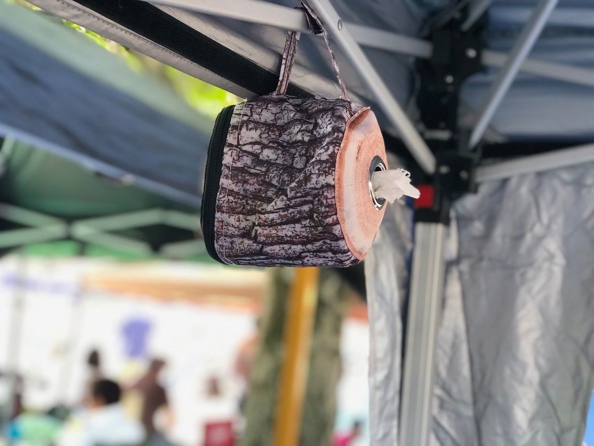 こちらは、木の切り株の中央からトイレットペーパーがひょっこり出てくるトイレットペーパーホルダー。見た目もかわいく、税込599円とお手ごろ価格なのがうれしい。キッチンの一角や、アウトドアで使う際にはテントやタープの骨組みにぶら下げておくと便利です。