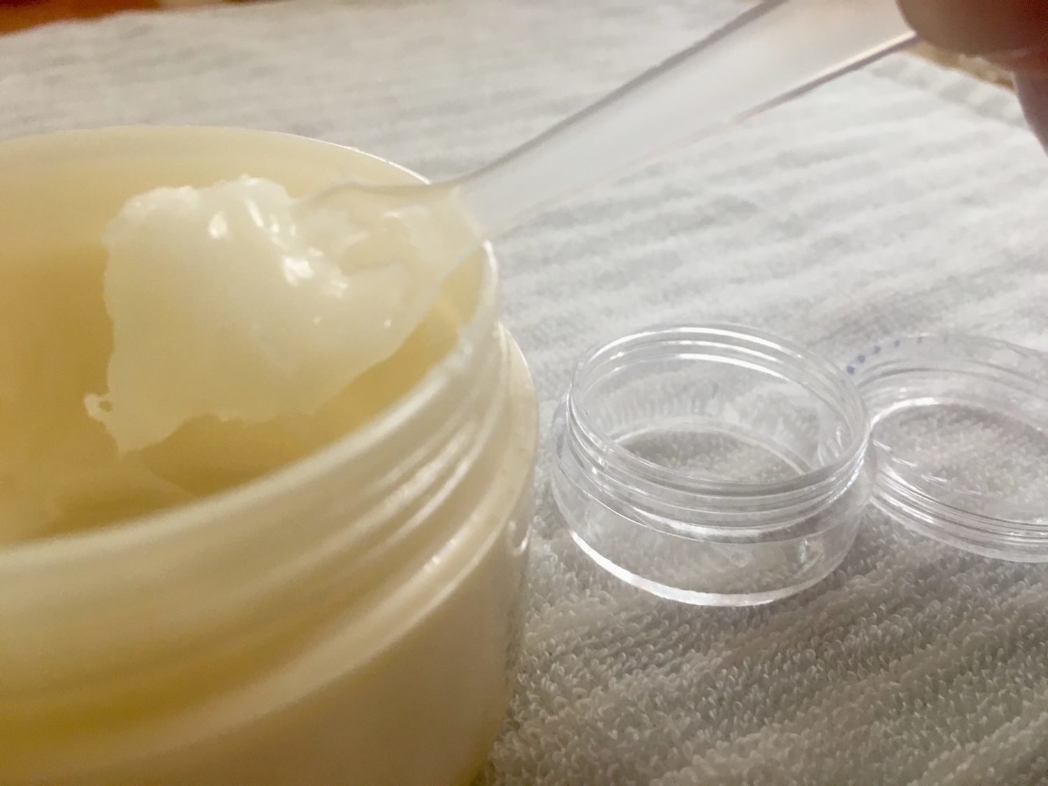 もう1つには、保湿クリームを。この時に、同梱のヘラで必要分だけ移しましょう。