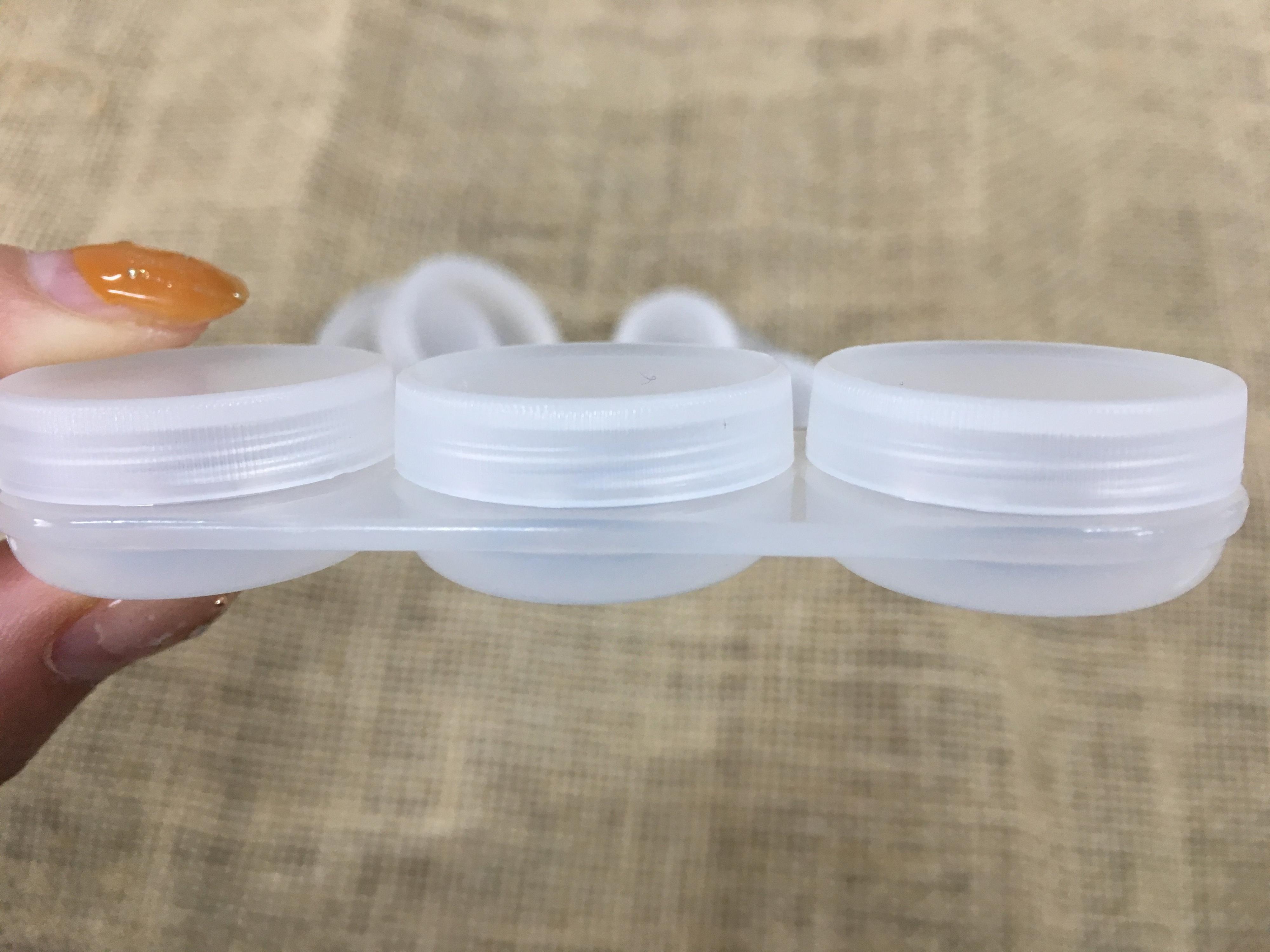 ポリプロピレンクリームケースは、3連タイプが190円(税込)、2連タイプが150円(税込み)、以前からあるMタイプが100円(税込)となっています。半透明なので中身が見えすぎないのもいいですね。