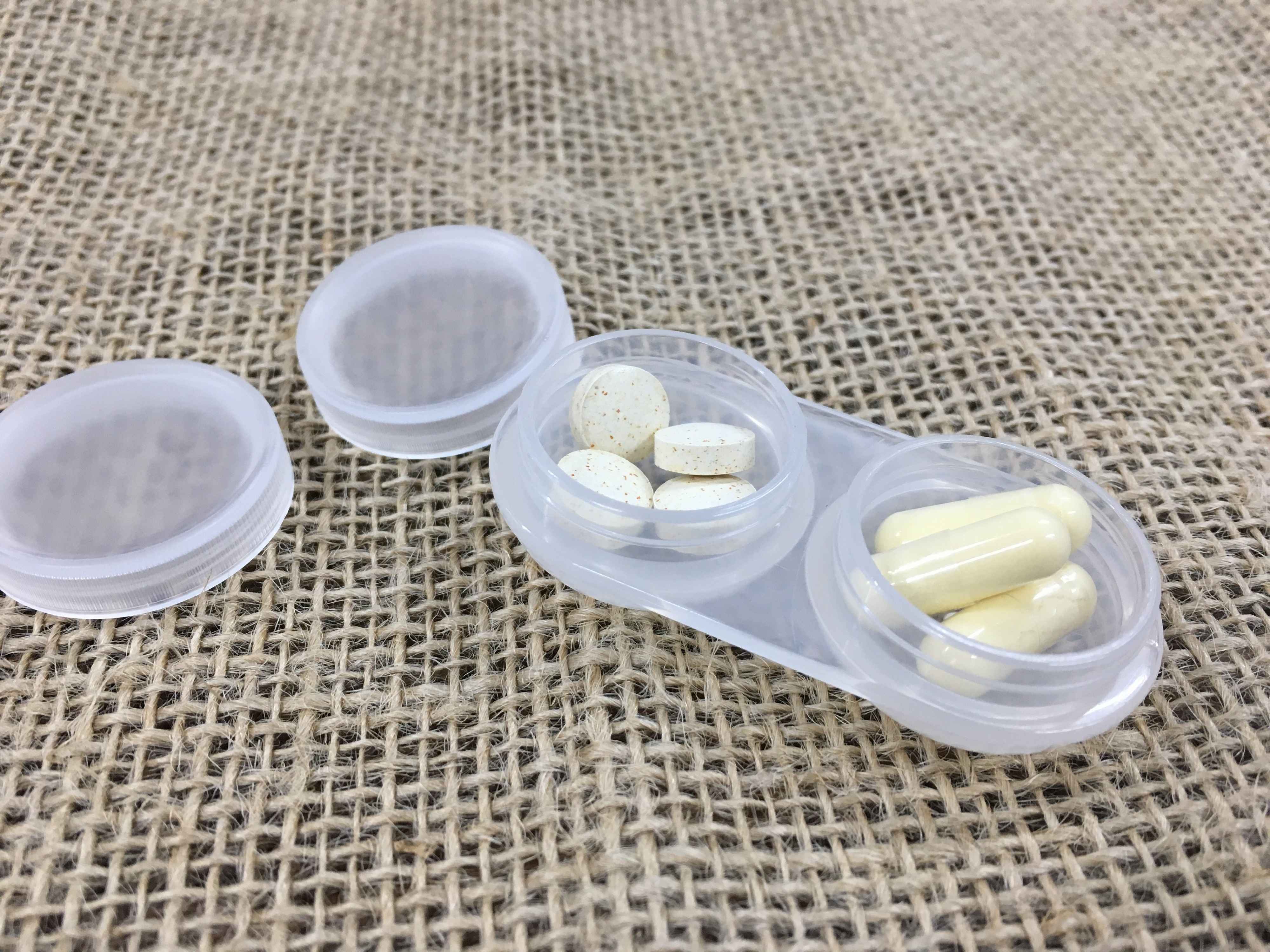 普通のビタミン錠剤であれば、1ケースに5粒くらい入れることが可能です。他にも、ビーズやネイルパーツなど、とても細かい物もなくさずに入れられます。