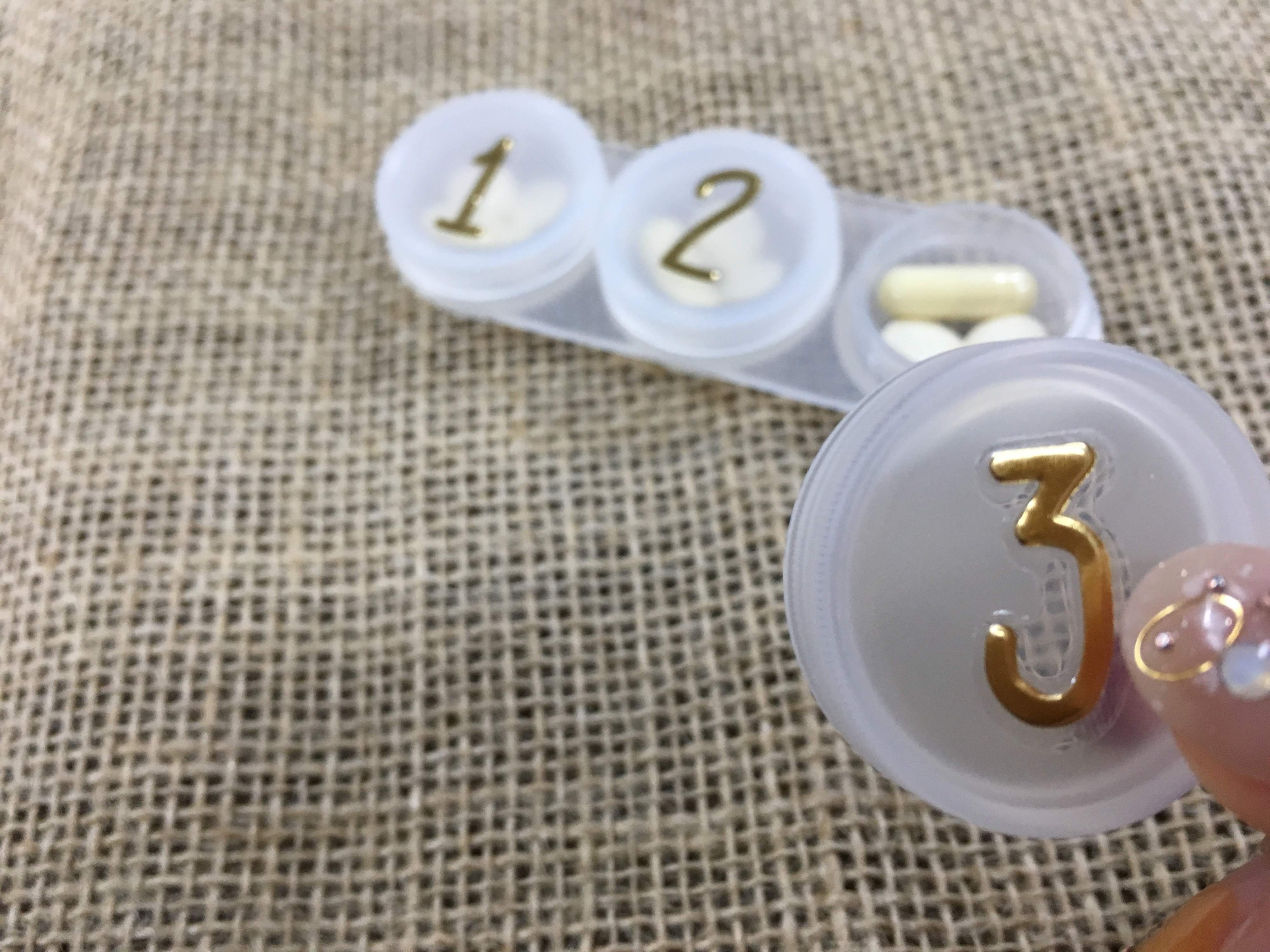 3連ケースは、サプリや薬を飲む量に分けていれ、1・2・3のシールをペタッ!より使いやすくなりますよね。