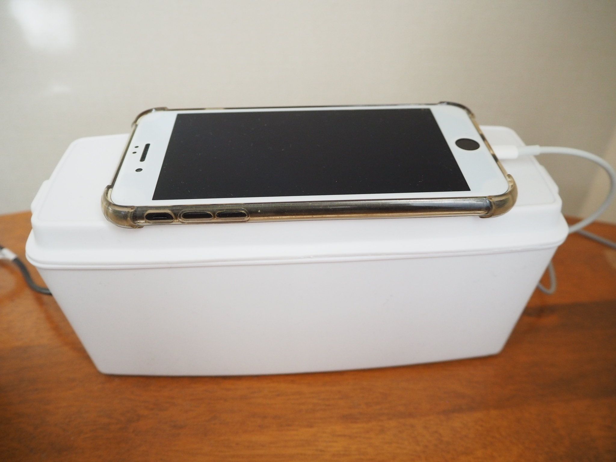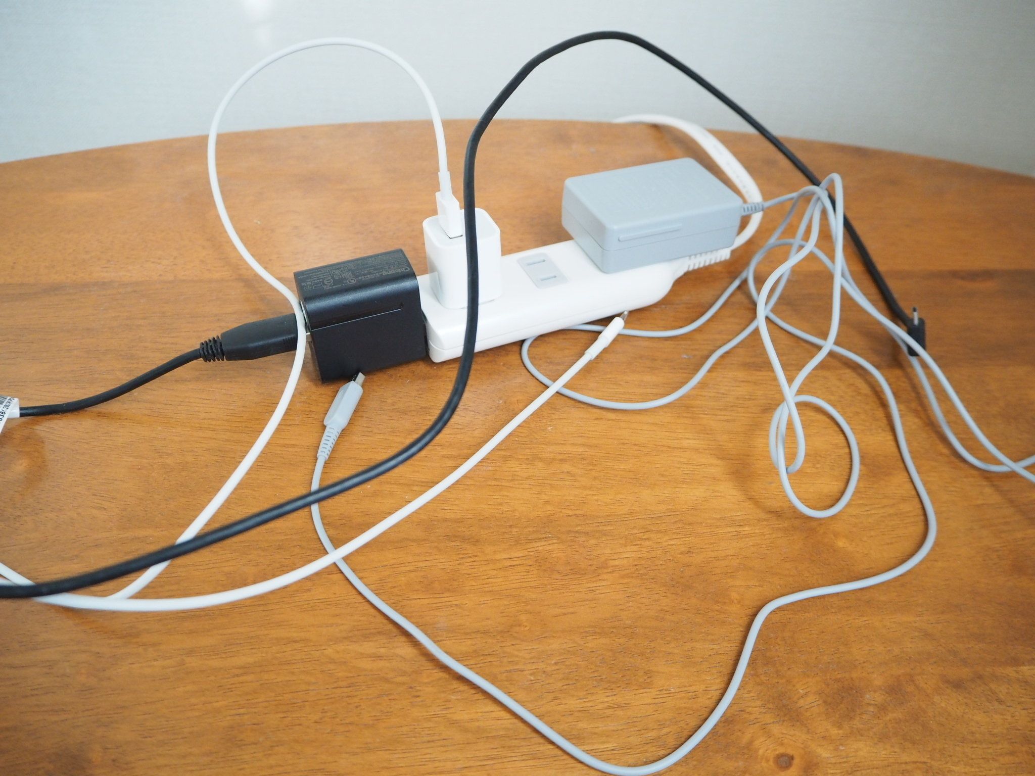 コードは発火の危険性があるのでボックスの中でまとめないでください、という注意書きあり。なので長いまま外に出しています。