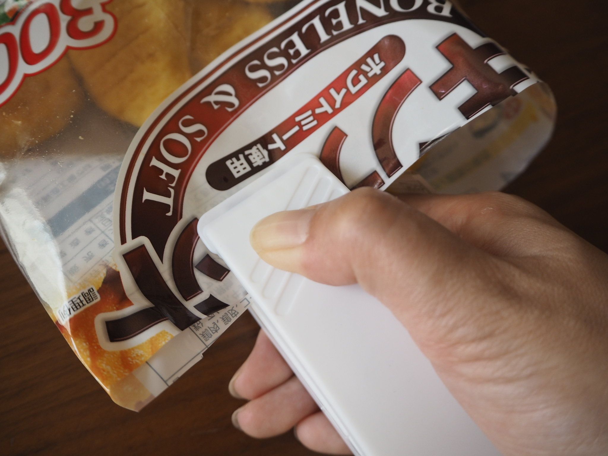 こちらのシーラー、最初は発熱部が押せてないことに気づかず、使い方に戸惑っていたのですが慣れてくると本当に便利!冷蔵庫の中にウィンナーが1個だけポロッと落ちてる、なんてことがなくなりましたよ!