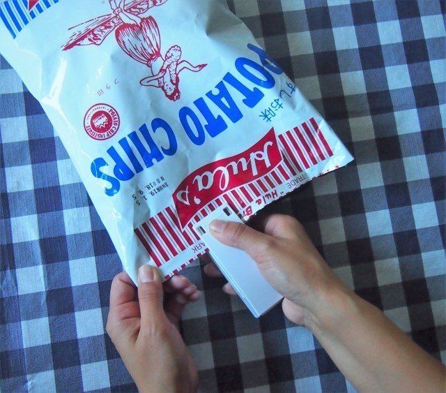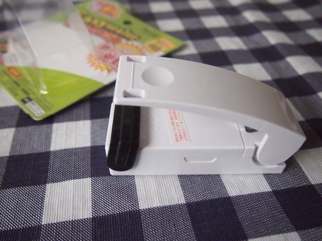 食べかけやのスナック菓子など、開封部分を“イージーシーラー”で挟んで引っ張るだけ。しっかりと密封しました。もう食べかけが気にならない!!