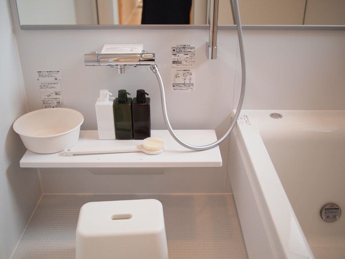 お風呂場、洗面所、トイレに至るまでとにかく生活用品は全て無印良品で統一!思わずその場でお買い上げしてしまいそうな気分になります…。白を基調とした室内は清潔感と凛とした空気がただよい、こんな家でありたいなぁという気持ちが湧いてきます。エクステリアもとても上品に、かつ、無印良品らしくまとめられていて感動的でした!