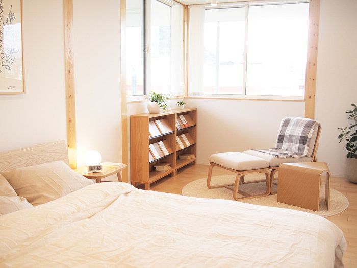 子供部屋を通り過ぎて回り込むと、そこには夫婦の寝室が。扉がないので、家族の息遣いをどこでも感じることができ、寂しさや孤独感とはほど遠いおうちだなぁと改めて感じました。無印良品の家 鹿児島店は2018年11月3日から内覧可能です!お近くの方は是非立ち寄ってみてください。