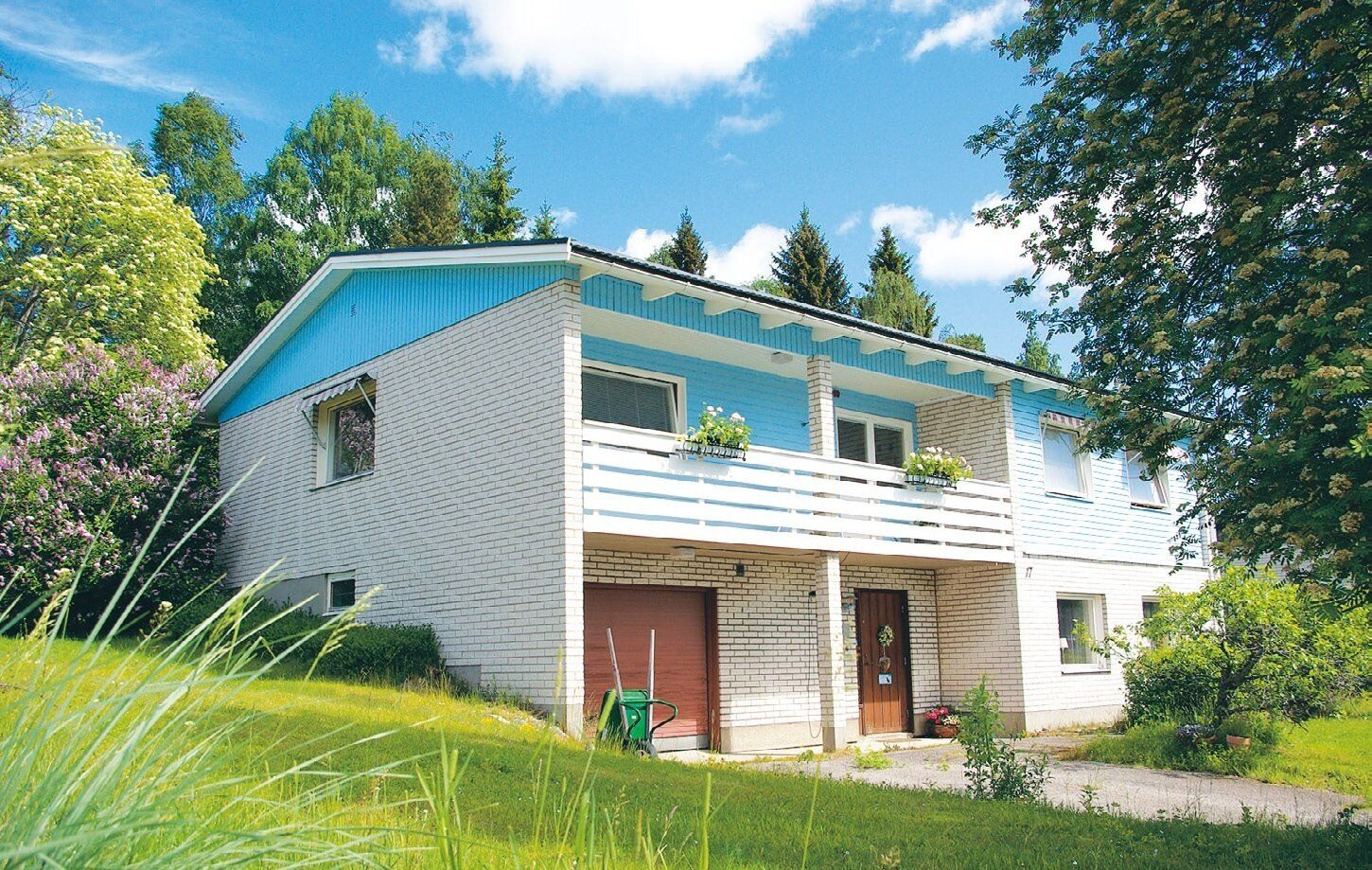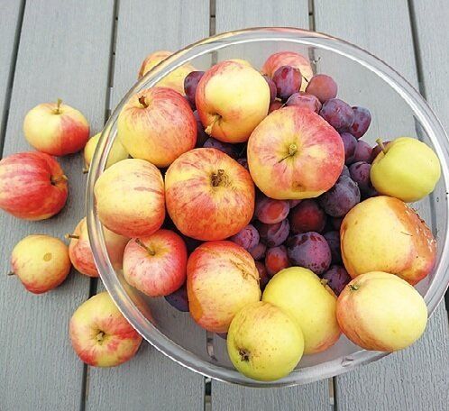 70年代に建てられた自宅は移住2年後に購入。斜面に立っているため裏庭は2階に面している。りんごの木があり、収穫も楽しめる。窓からは正面に海が望め、冬は美しい朝焼けを眺められることがいちばんのぜいたく。