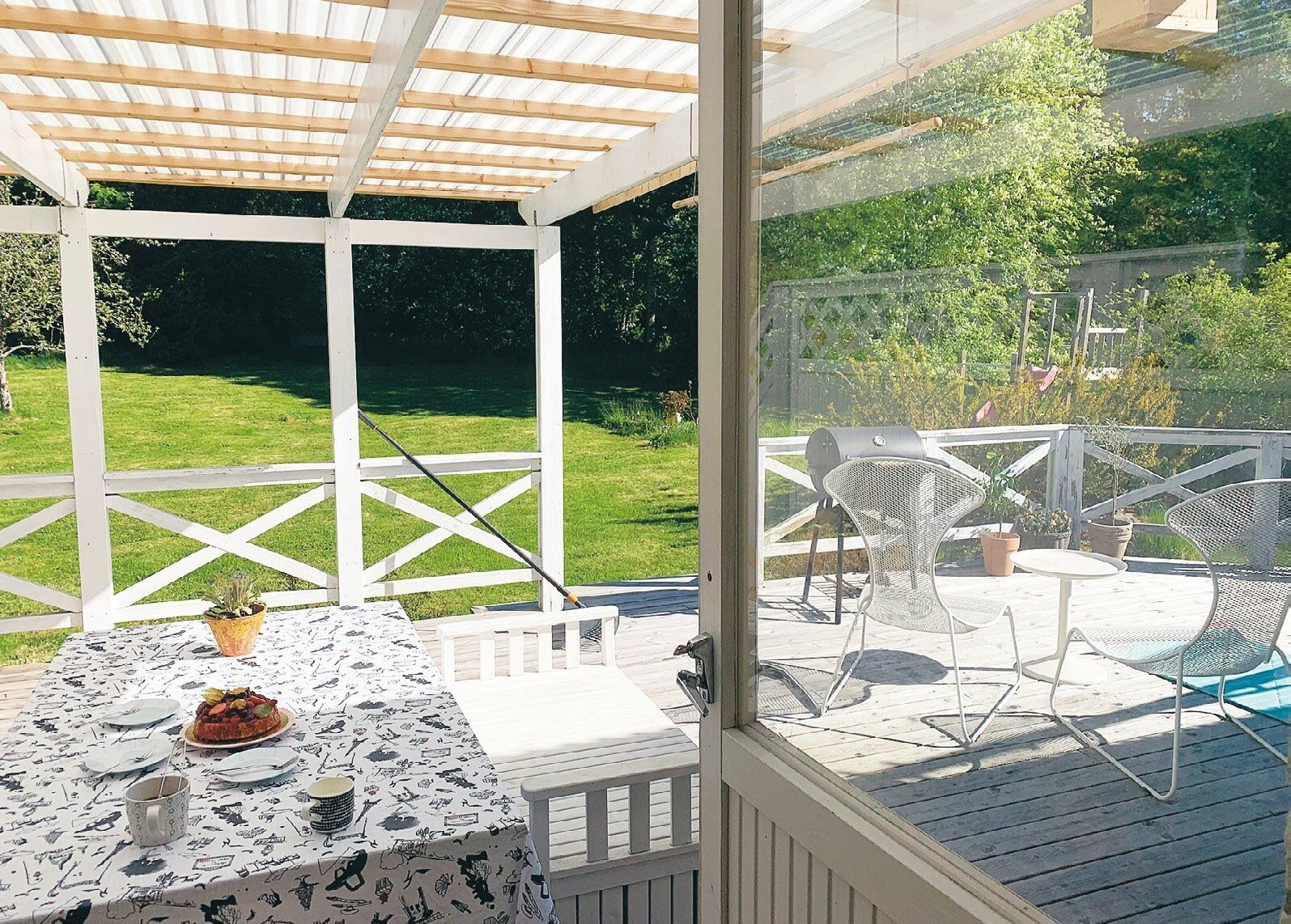 DIYが大好きなスウェーデンの人々。「わが家も4年前に外壁の塗装にチャレンジしました」。友人でフォトグラファーのヤニッケさんは古い家の壁紙をすべて張り替え、ランプシェードも手作り。なんとウッドデッキも自作したそう。