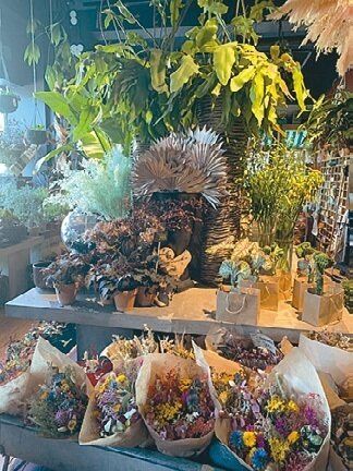 - ドライフラワーブーケも並ぶ生花店