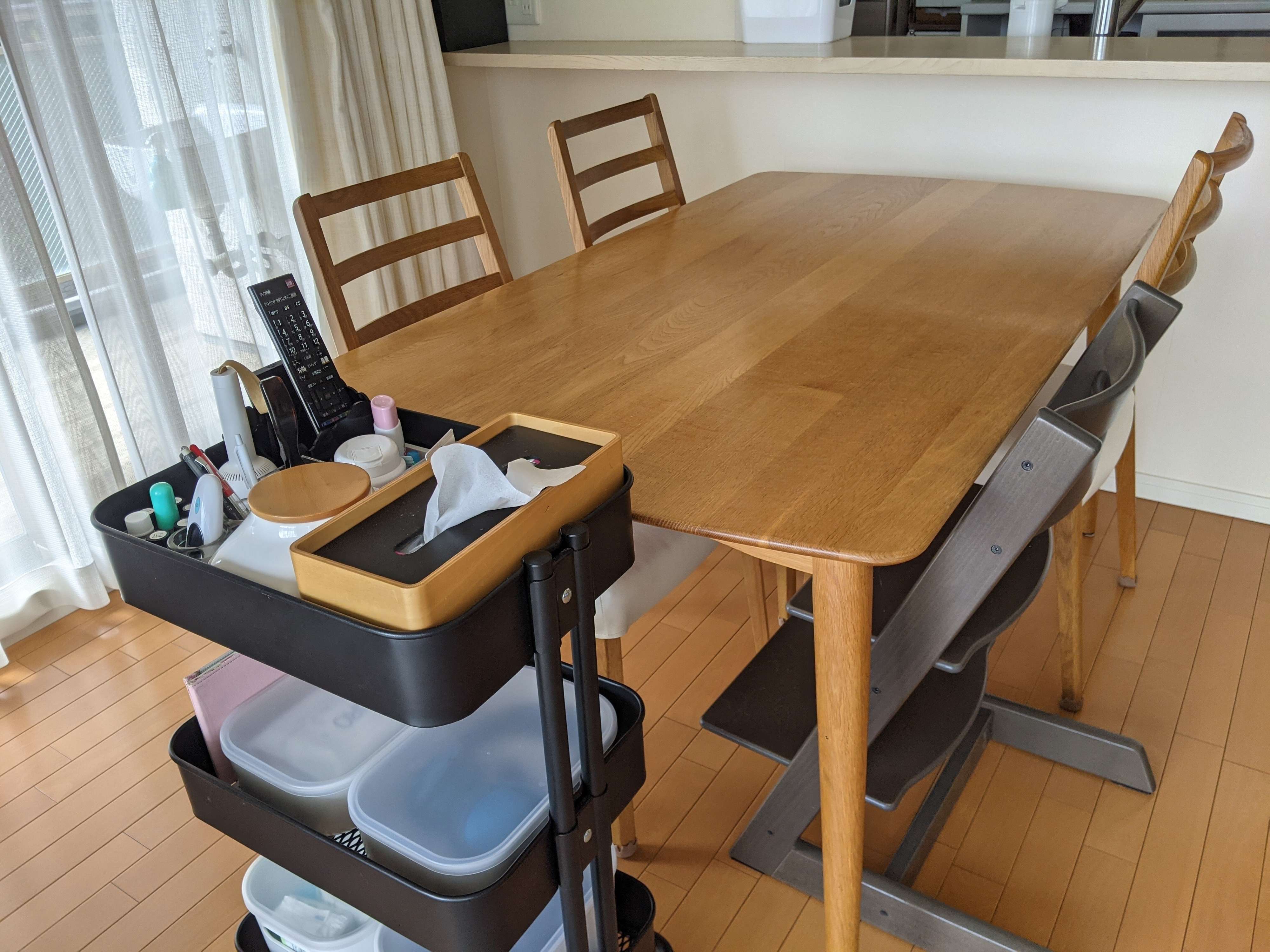 テーブル横にワゴンを活用した収納方法、いかがでしょうか。