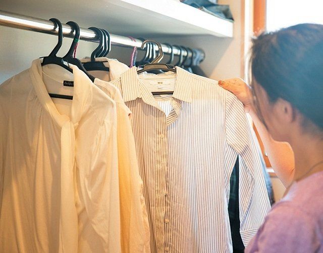 柄物はコーディネートを考えるのが面倒なので、通勤服は、「白いブラウス+モノトーンのスカートかパンツ」を制服化。流行にも左右されないので、買い替えもしやすくなりました。