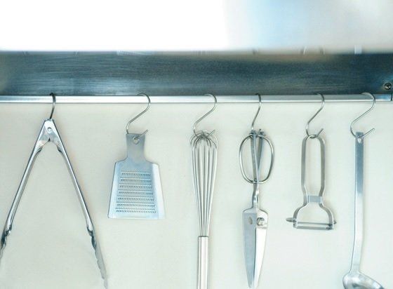 全部シルバー色を選んだから、換気扇の枠にひっかける収納でもサマになる。