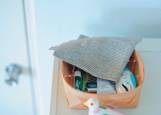 避けきれないのが、見た目が好きとは言いきれない実用品。使う場所に出しておくために、好きなかごやバッグに隠しながら収納。好きで買った物たちが活用でき、見ても心がざわっとしません。