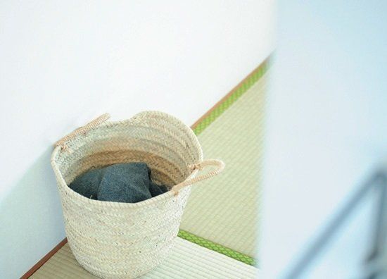 夫が服をいすにかけるので、放り込むだけのかごを近くに置いて解決。