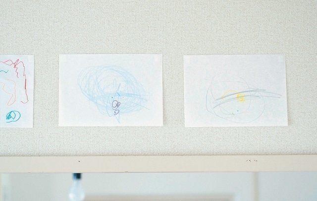 子どもの作品はもちろん好き。ちゃんと飾ればほのぼの豊かな気持ちになれます。まわりに余白があれば、ごちゃつく印象になりません。