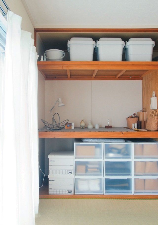 用途のないびんやかご。でも、自分にとって心が落ち着く物だから、飾っておきたい。押し入れ上段の余白は心地よさのために欠かせないそう。