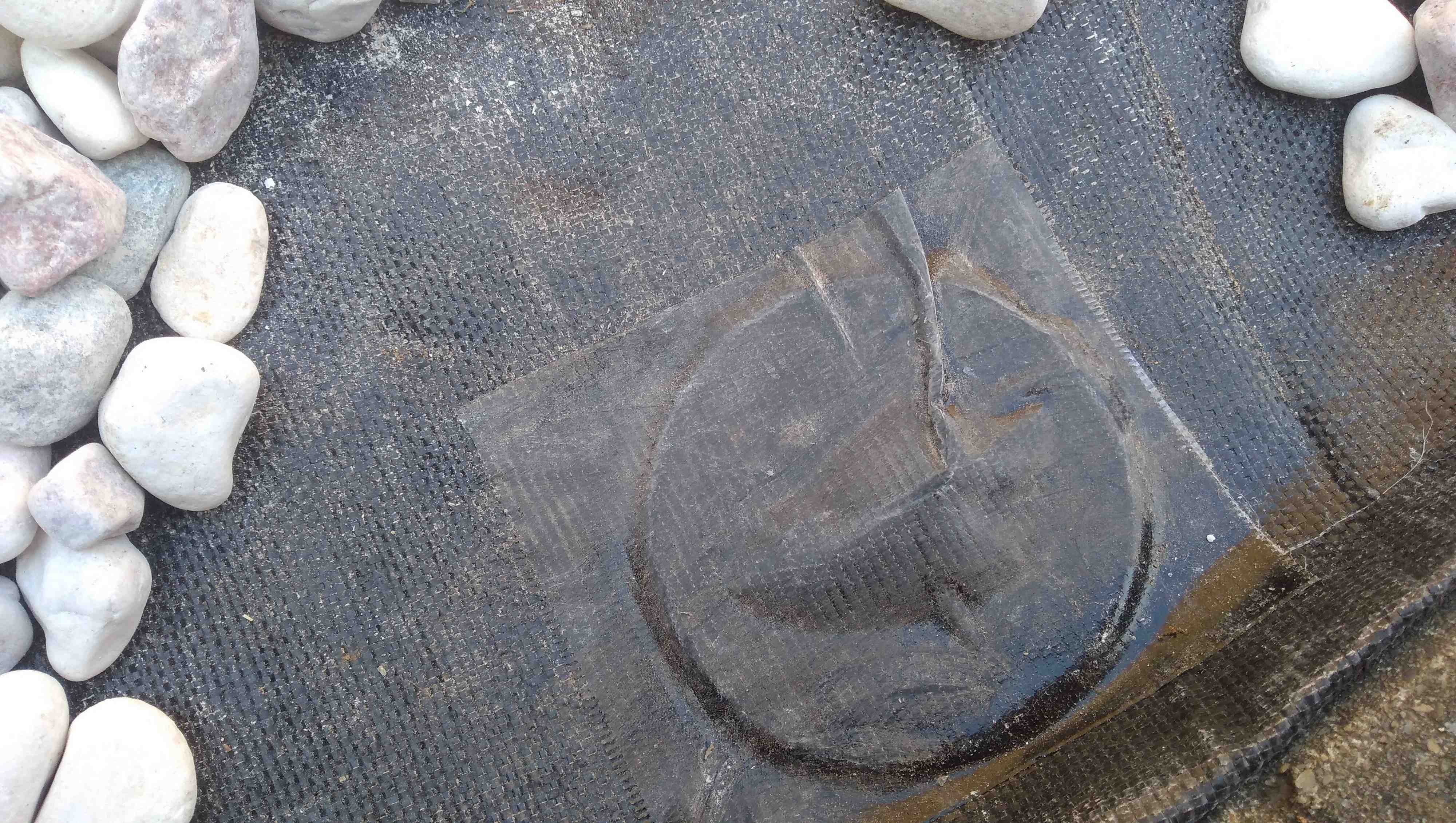 必要な大きさより大きめにざっくりカットしてから敷きます。細かい調節はシートの上からUピンを刺して、ある程度固定してからカットしていきました。