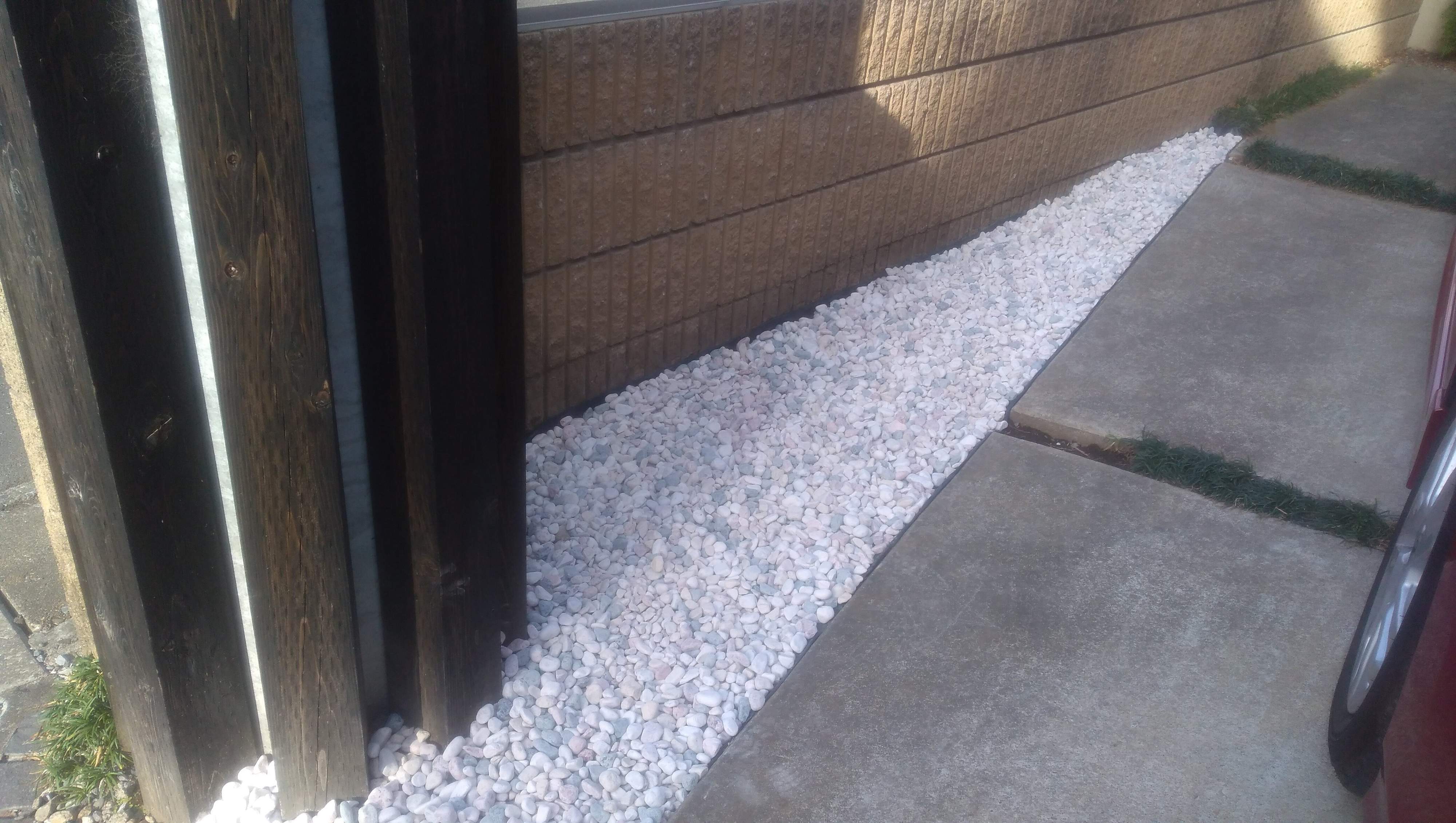 どうでしょう?土だったときよりもパッと明るく、見た目もキレイになりました。(白くなりすぎないように「ミックス」タイプの砂利を購入したのですが、思ったより白いような…)