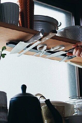 包丁類は棚下にぺたり!