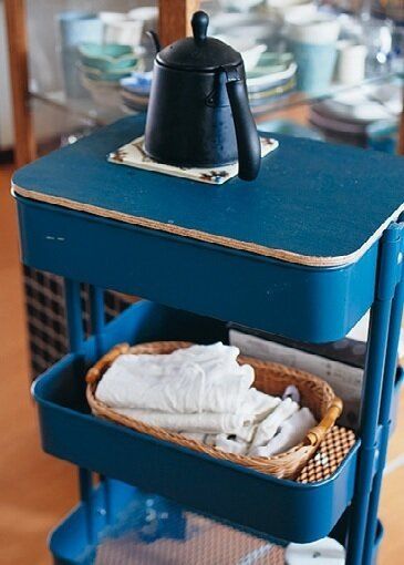 • IKEAのワゴンに板を置いて作業台に