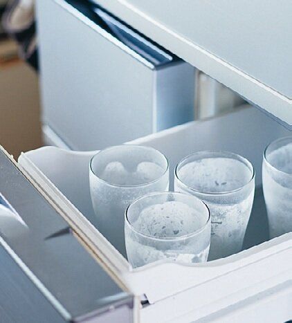 冷蔵庫のチルド室に100均で買ったグラスを収納。「ここを開ければいつでもビール用のグラスが冷えてます。これで最高のビールが飲めちゃいます」。